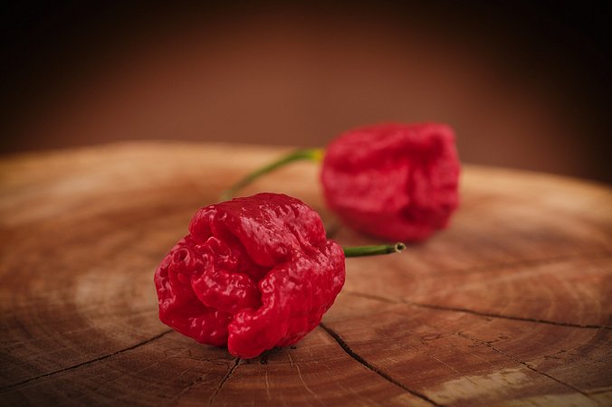 Plody: Moruga na steroidech. Plody jsou robustní, soudečkovité a s extrémně krabatým povrchem. Dorůstají pěkných rozměrů, asi 4-5 cm do délky a okolo 5 cm v průměru. Zprvu jsou tmavě zelené, následně zrají do červené barvy.  Chuť a pal:…