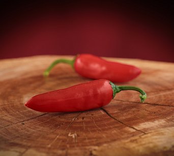 Plody: Robustní, soudečkovité a s velmi zvrásněným povrchem. Jsou asi 4-6 cm dlouhé a okolo 3-4 cm široké. Zprvu jsou zelené, následně zrají do sytě červené barvy.  Chuť a pal: Plody jsou typické svým bohatým ovocným a kořeněným aroma a…