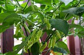 Plody: Podlouhlé, subtilní, jem velmi mírně pokroucené, asi 4-6 cm dlouhé a okolo 1-1,5 cm široké. Zprvu jsou světle zelené, následně zrají do velmi sytého odstínu žluté barvy.