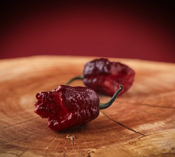 Plody: Robustní, zavalité a extrémně krabaté. Dorůstají délky okolo 5-6 cm a asi 3-4 cm v průměru. Zrají ze zelené do jasně červené barvy.  Chuť a pal: Plody mají velmi příjemnou ovocnou chuť doprovázenou kořeněnými exotickými tóny. Plně…