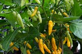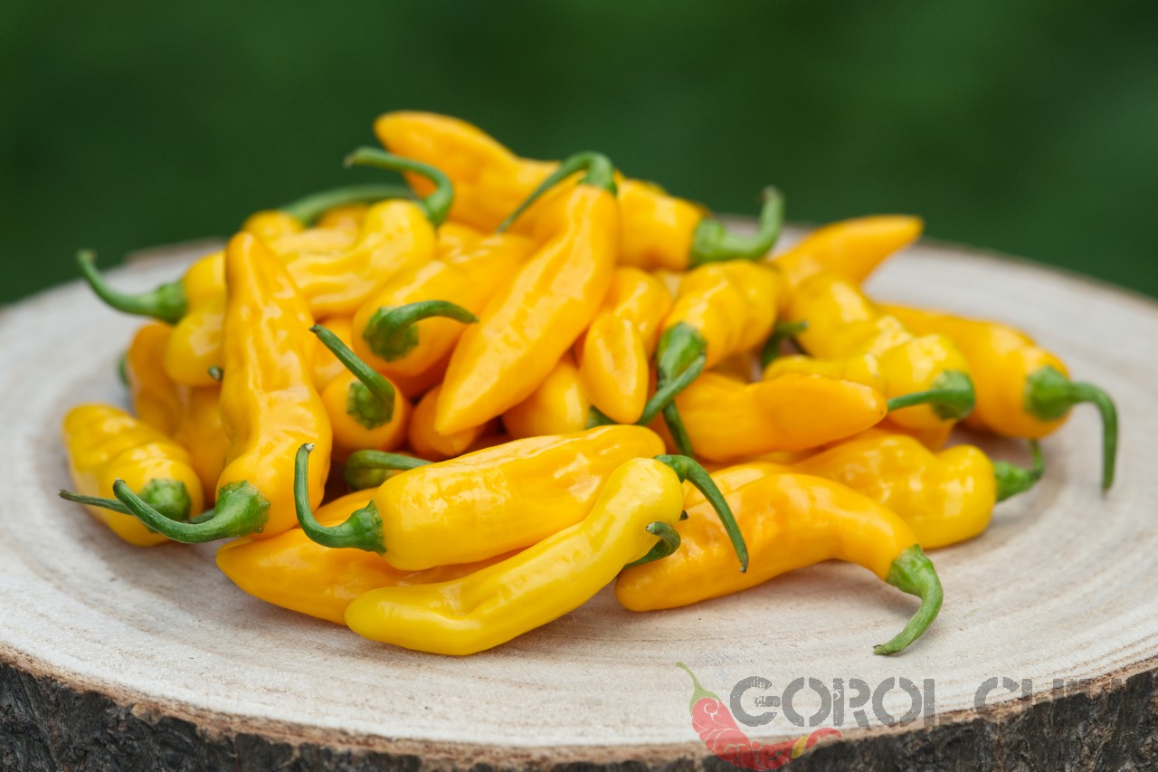 Plody: Soudečkovité, oproti běžným Habanerům však mírně podlouhlé, mají tedy celkově užší dojem. Dorůstají délky okolo 5 cm a asi 3-3,5 cm v průměru. Zrají ze zelené do žluto oranžové barvy.  Chuť a pal: Papriky mají osvěžující ovocnou…