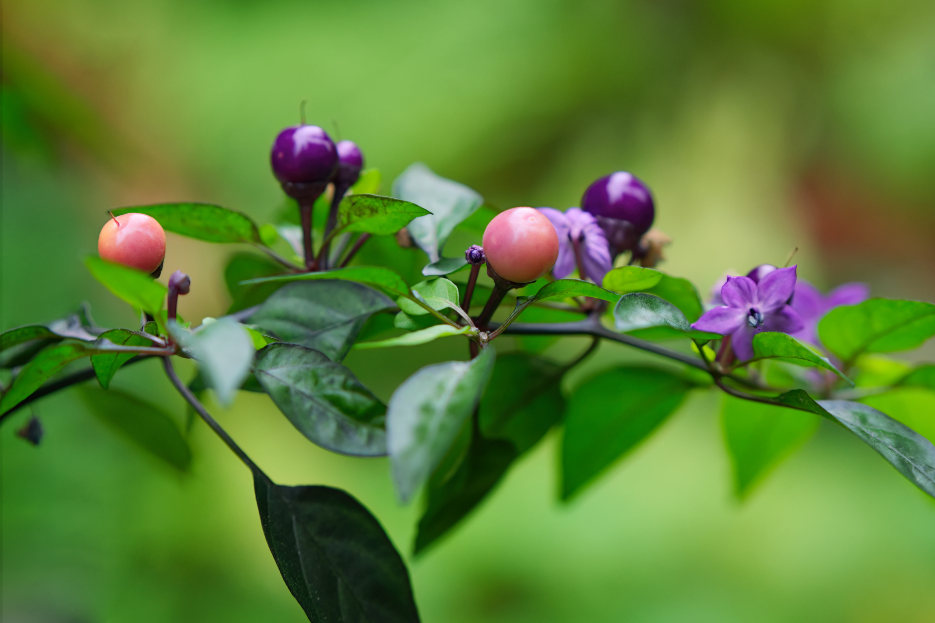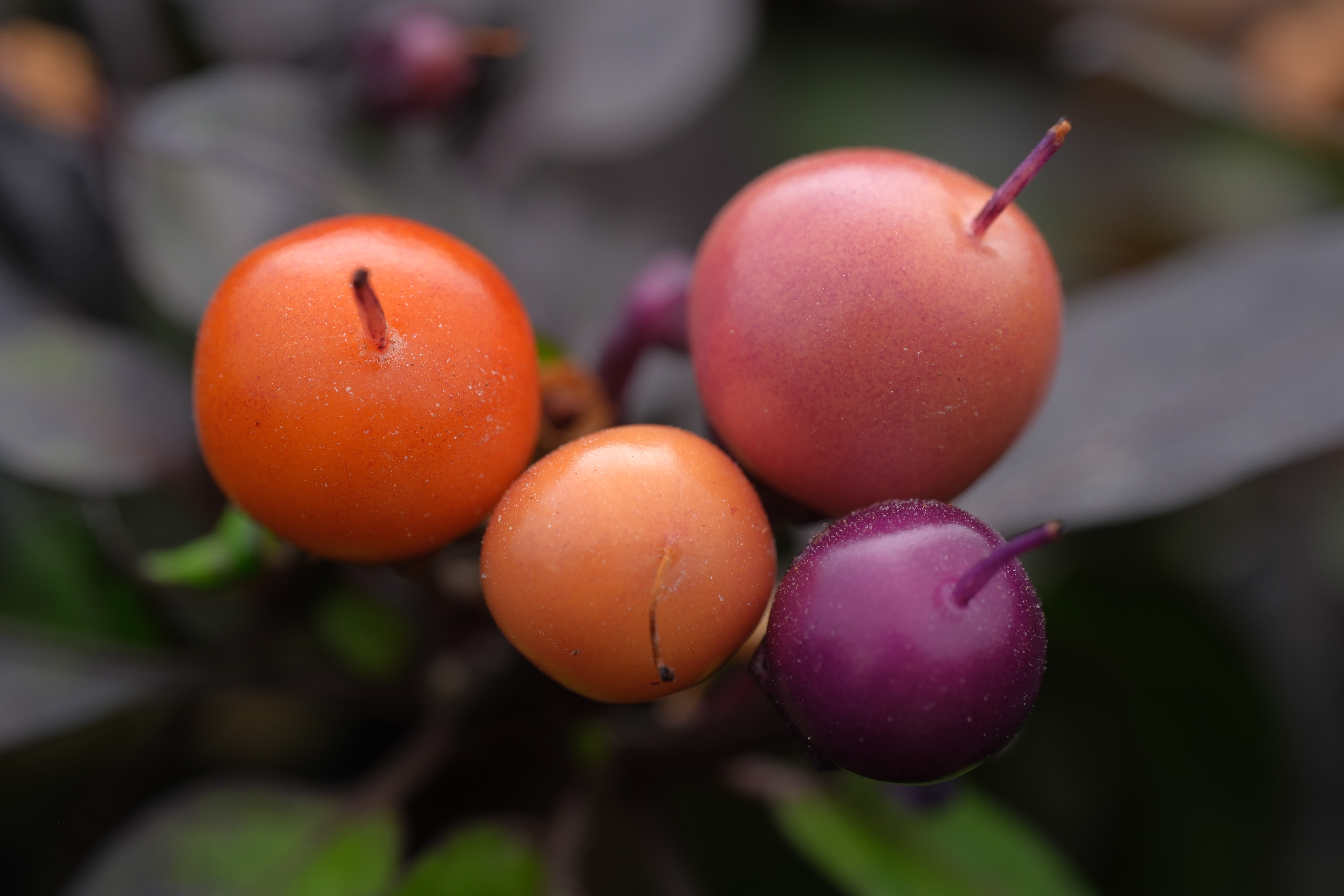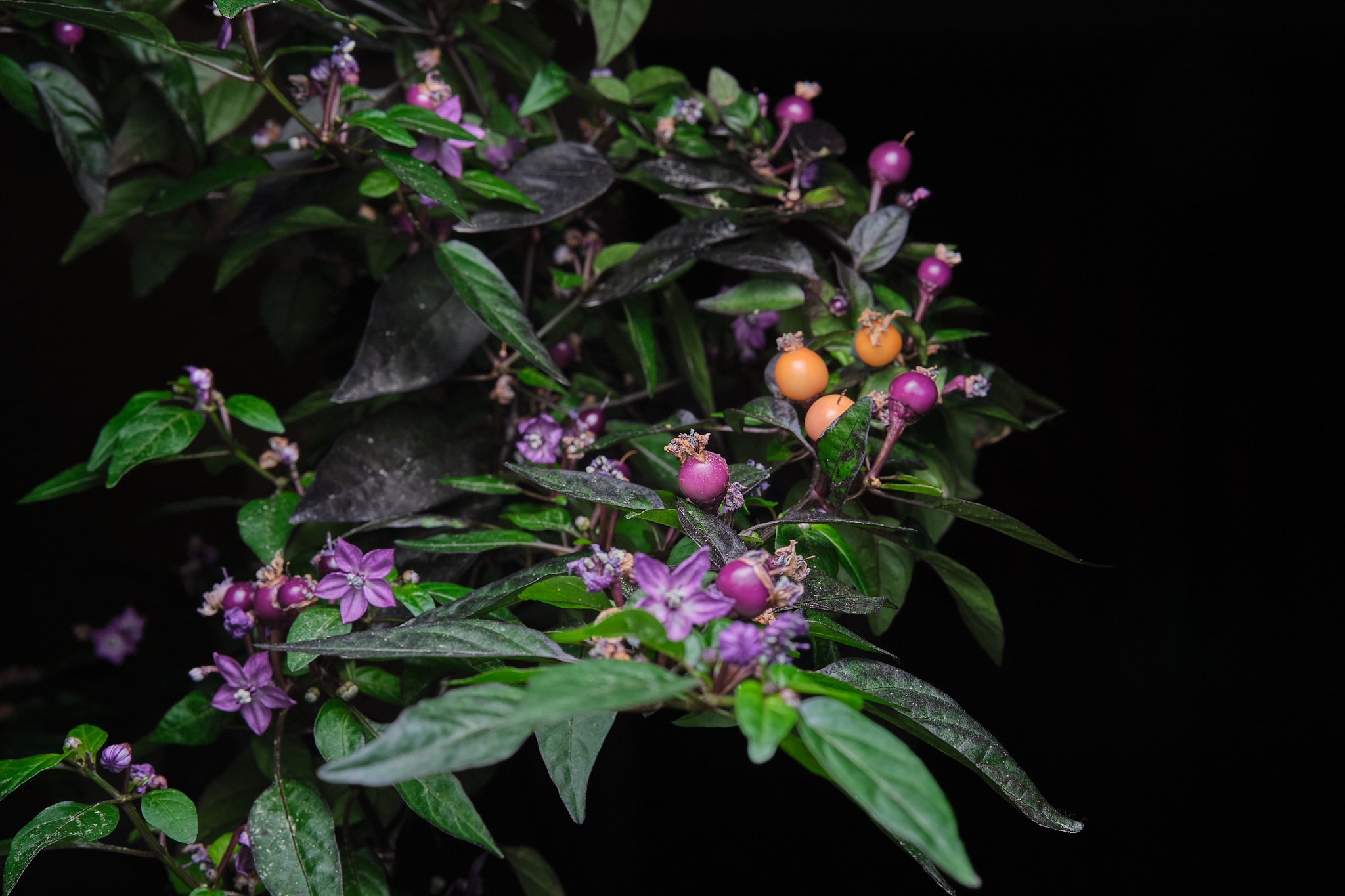 Rostlina: Relativně nízký keřík dorůstající výšky okolo 40-60 cm. Stonek je černý, listy jsou tmavě fialové až černé. Při pěstování ve stínu či jiných slabě světelných podmínkách mohou být listy zelené. Rostlina okouzlí také svými růžovo-fialovými květy. Díky kompaktnímu vzrůstu a násadě květů v trsech jsou rostliny doslova obalené plody.