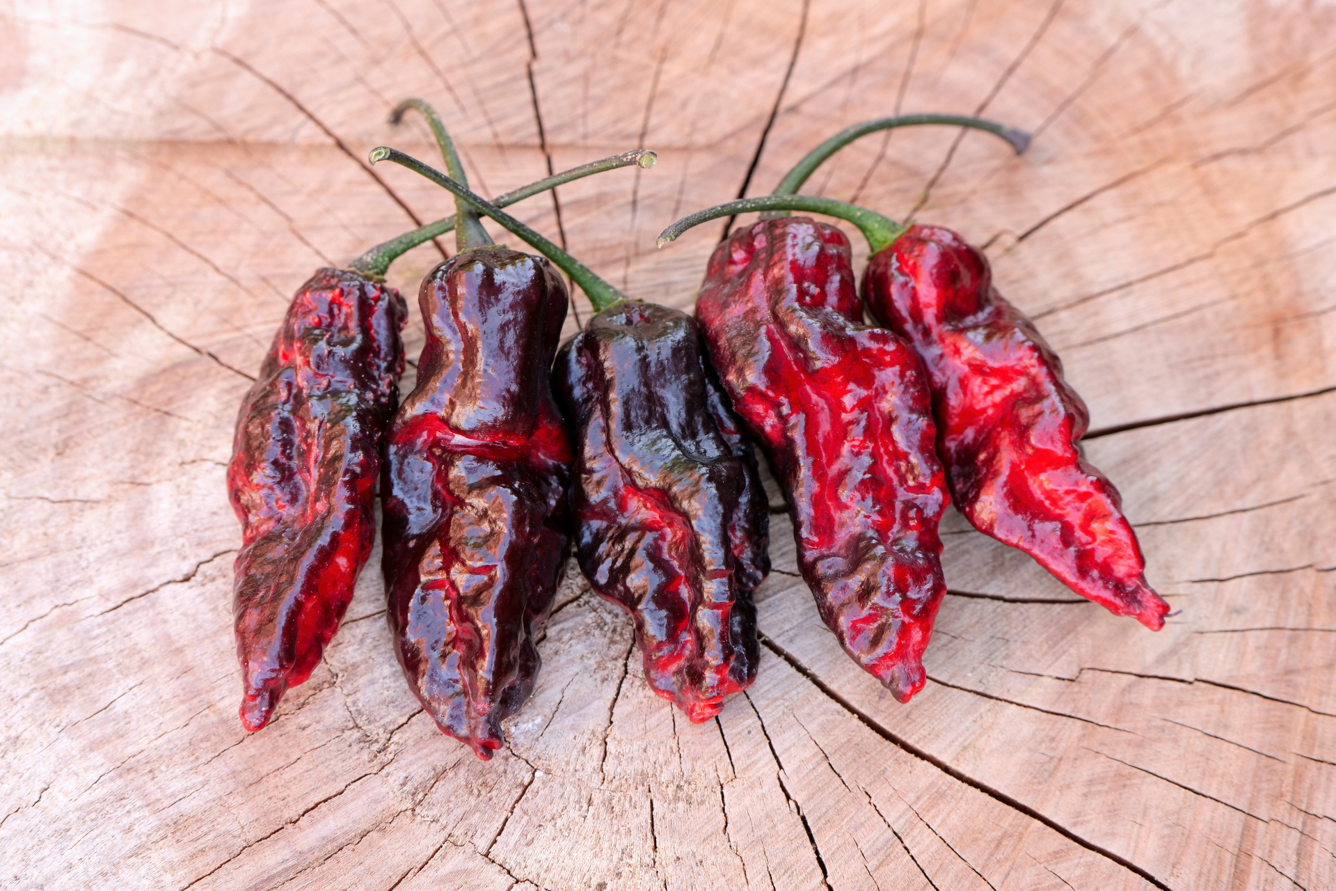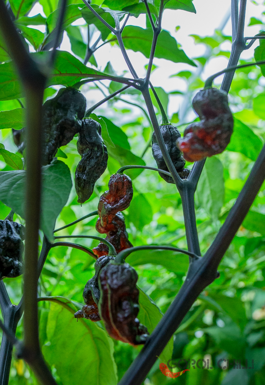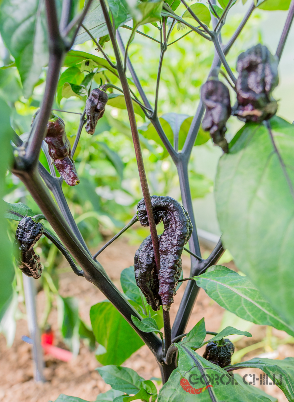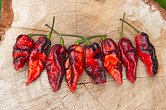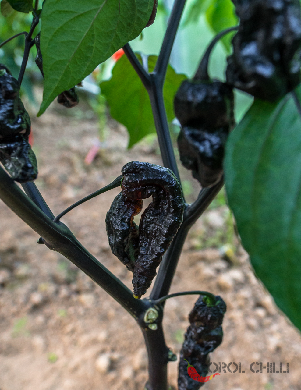 Plody: Robustní, soudečkovité a extrémně zvrásněné. Dorůstají délky okolo 4-5 cm a porobného průměru. Zprvu jsou tmavě zelené, následně zrají do sytě červené barvy.  Chuť a pal: Plody mají silně kořeněnou chuť s ovocnými tóny s palčivým…