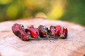 Plody: Soudečkovité, spíše drobnější, a zakončené drobným nápadným ocáskem. Jejich povrch je silně krabatý. Dorůstají průměru i délky okolo 4-5 cm. Zprvu jsou tmavě zelené, následně zrají do jasně červené barvy. Chuť a pal: Odrůdá mi…