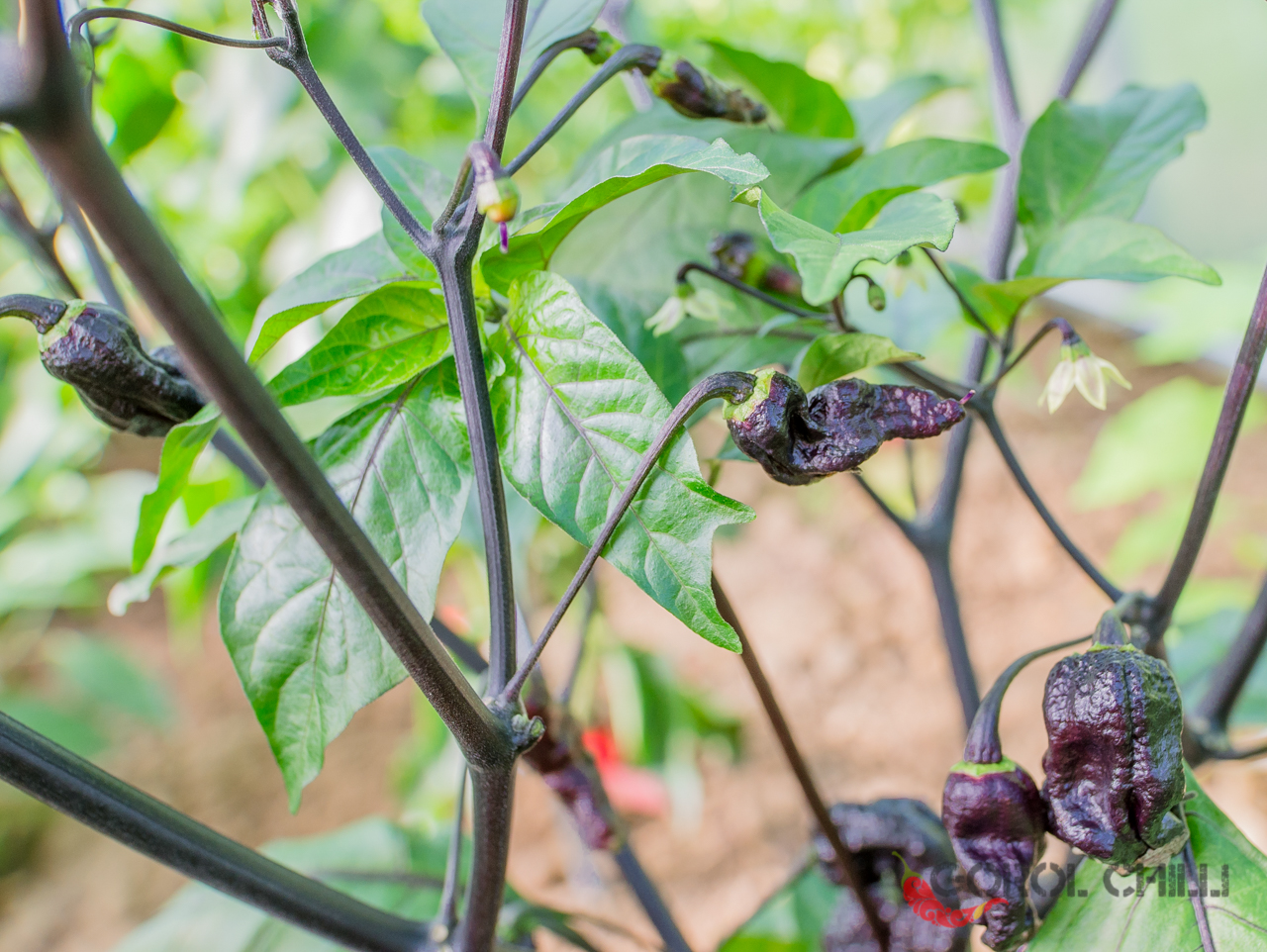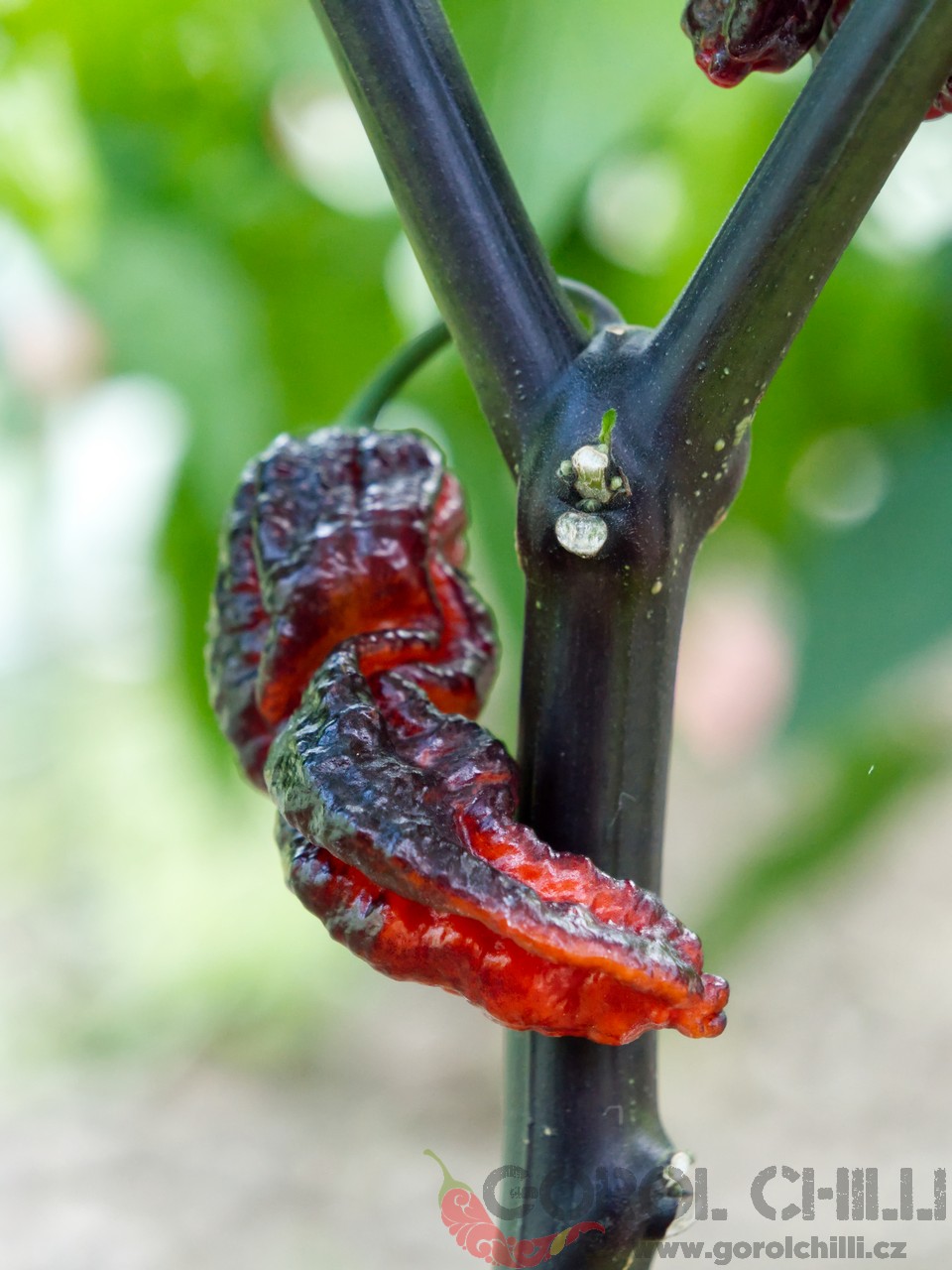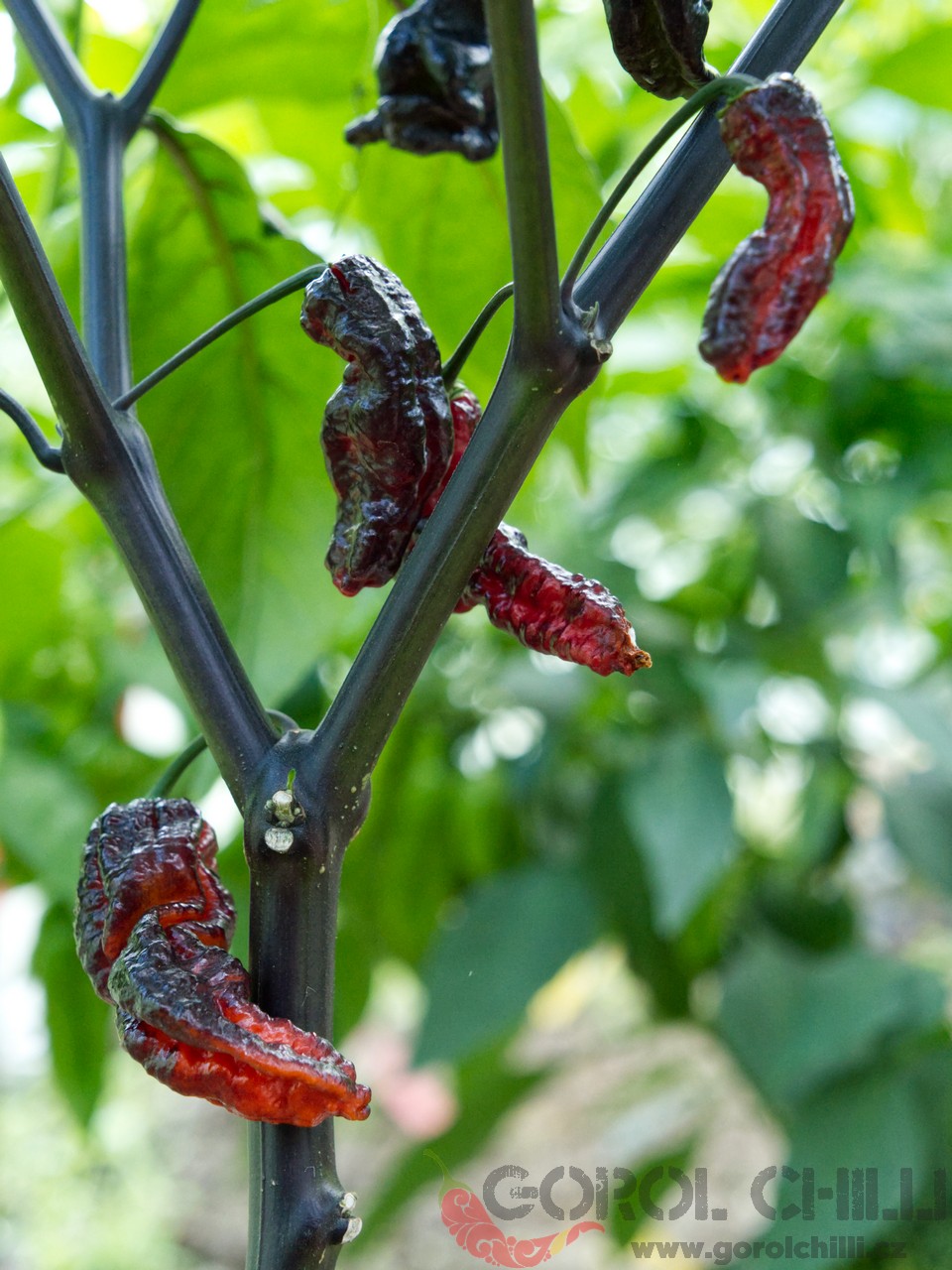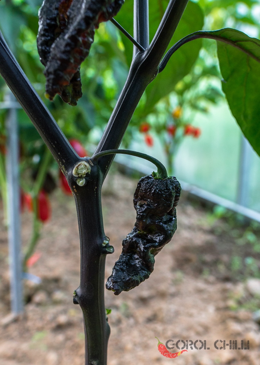 Rostlina: Spíše vyšší keřík dorůstající výšky okolo 1-1,5 metru a průměru koruny okolo 0,8-1 m. Stonky i listy jsou zpravidla zcela černé, což vypadá naprosto fantasticky, zejména v kombinaci s napůl černými zralými plody. Plody pak vyrůstají jednotlivě a keře mají standardní výnosy.