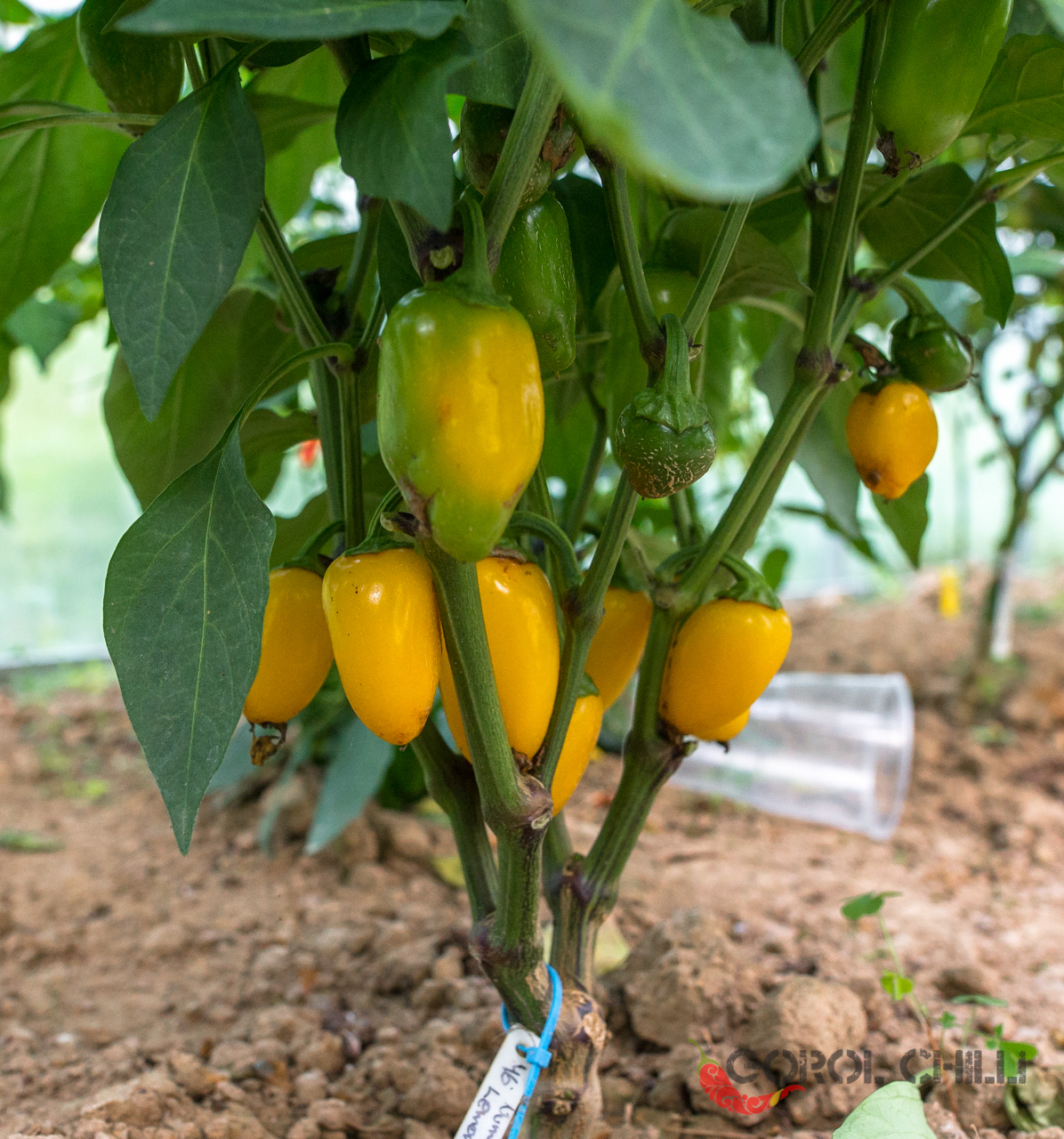 Plody: Podlouhlé, úzké a velmi hladké. Paradoxně se příliš nepodobá ani jednomu z rodičů. Plody zrají ze zelené přes žlutou a oranžovou do červené. Chuť a pal: Chuťově se velmi podobá Peito de Moca. Pal je vyšší v F1 generaci dosahuje…