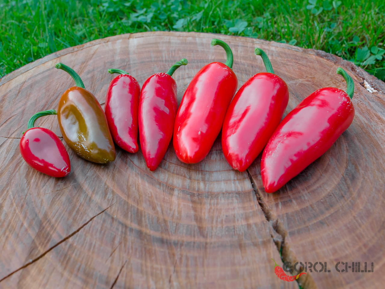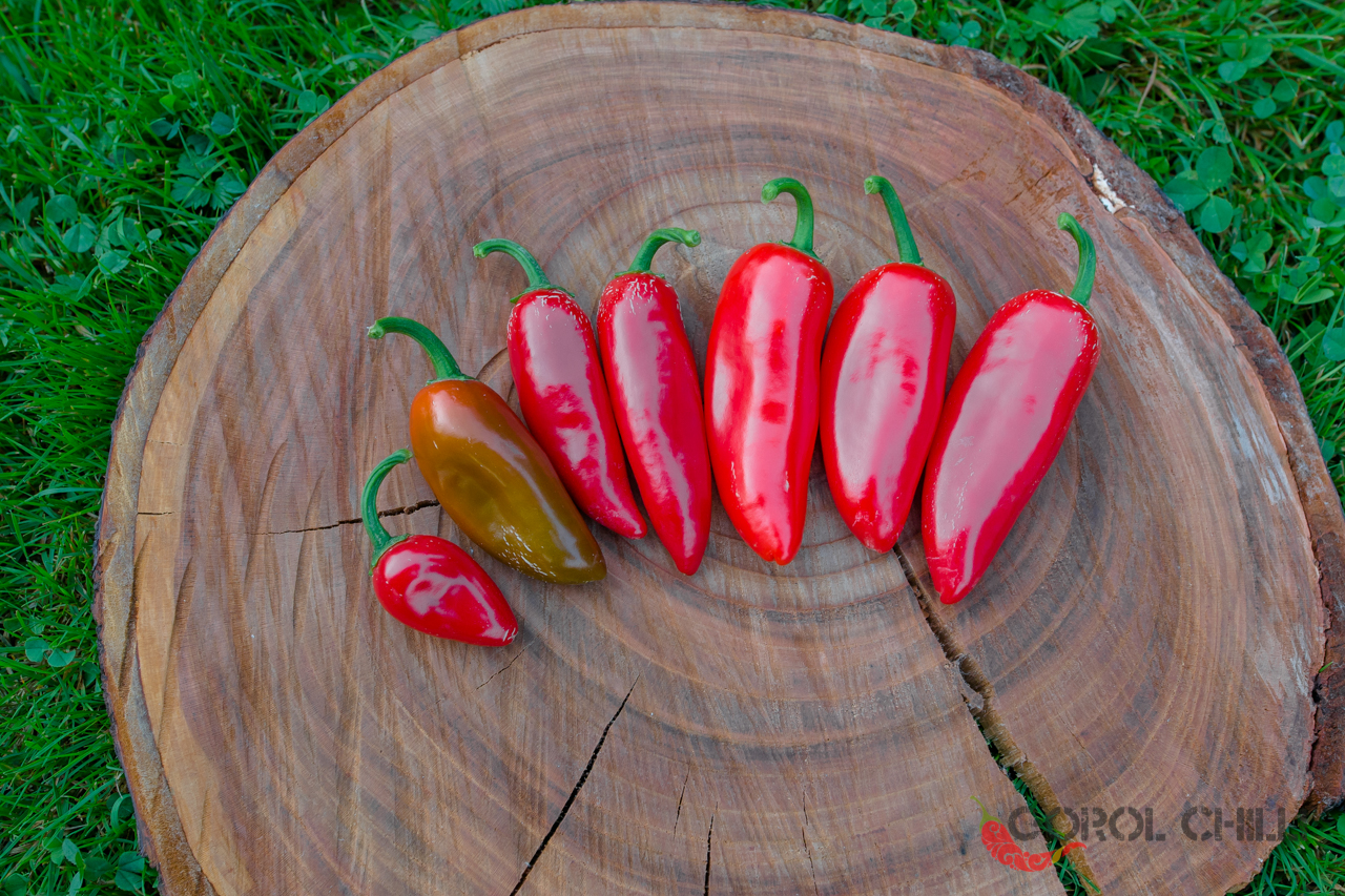 Plody: Podlouhlé, velmi krabaté a s náladným dlouhým ocáskem. Dorůstají délky okolo 7-9 cm (včetně ocásku) a průměru asi 3-4 cm. Zrají ze zelené do červené barvy. Chuť a pal: Papriky mají ovocnou chuť s kořeněnými tóny doprovázenou…
