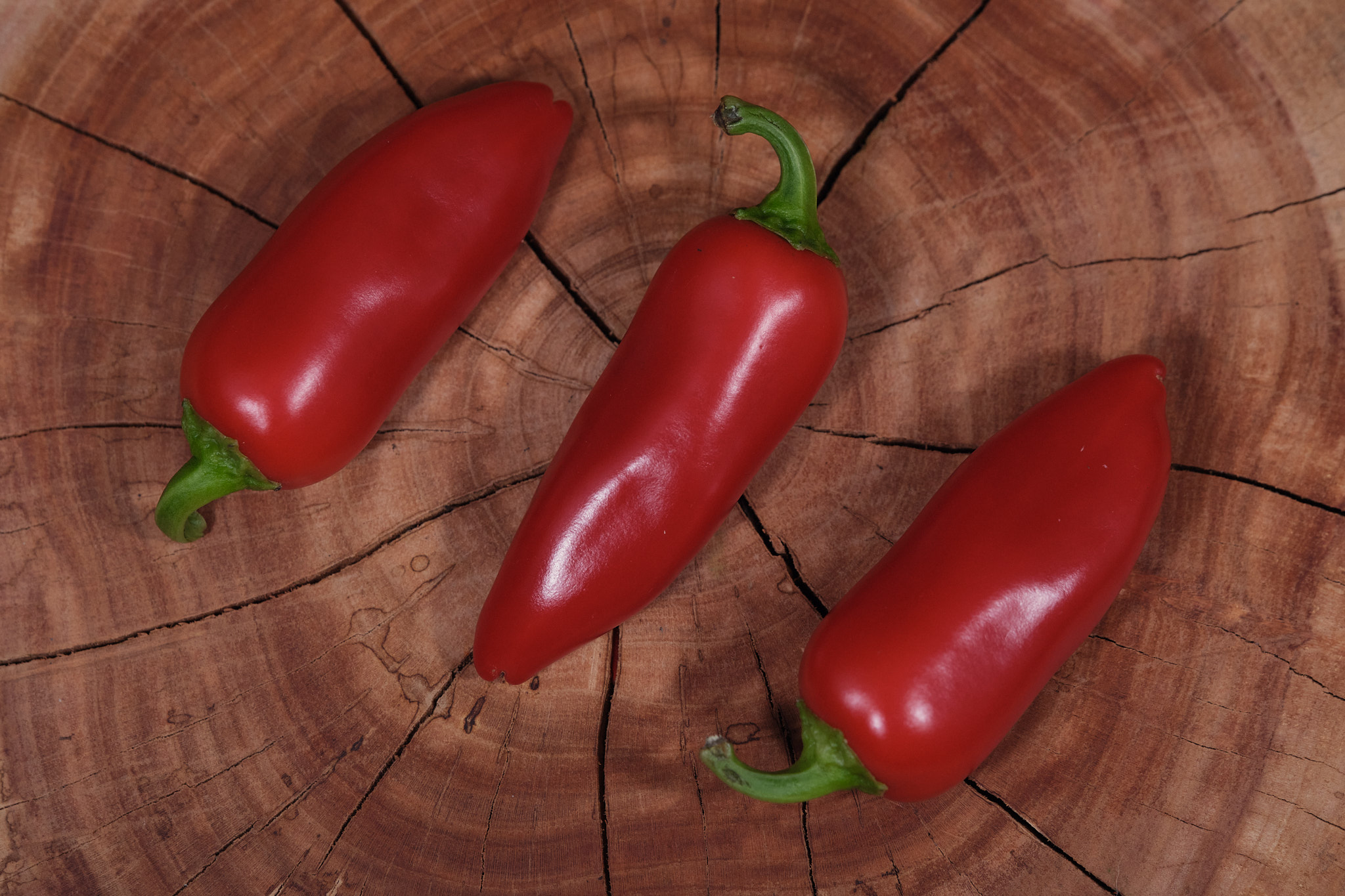 Plody: Robustní, soudečkovité a s nápadným žebrováním. Dorůstají délky okolo 5-6 cm a asi 3-4 cm v průměru. Zrají ze zelené do sytě červené barvy.  Chuť a pal: Plody se vyznačují nasládlou ovocnou chutí s kořeněným exotickým aroma.…