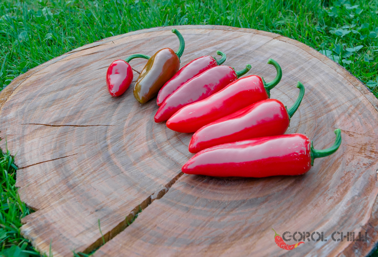 Plody: Drobné, fazolkovité, jen 1,5-2 cm dlouhé  a 4-5 mm široké. Zprvu jsou tmavě zelené, následně zrají do svítivě červené barvy.  Chuť a pal: Plody jsou typické ostrou zeleninovou chutí a intenzivním řezavým palem. Ten se reálně…