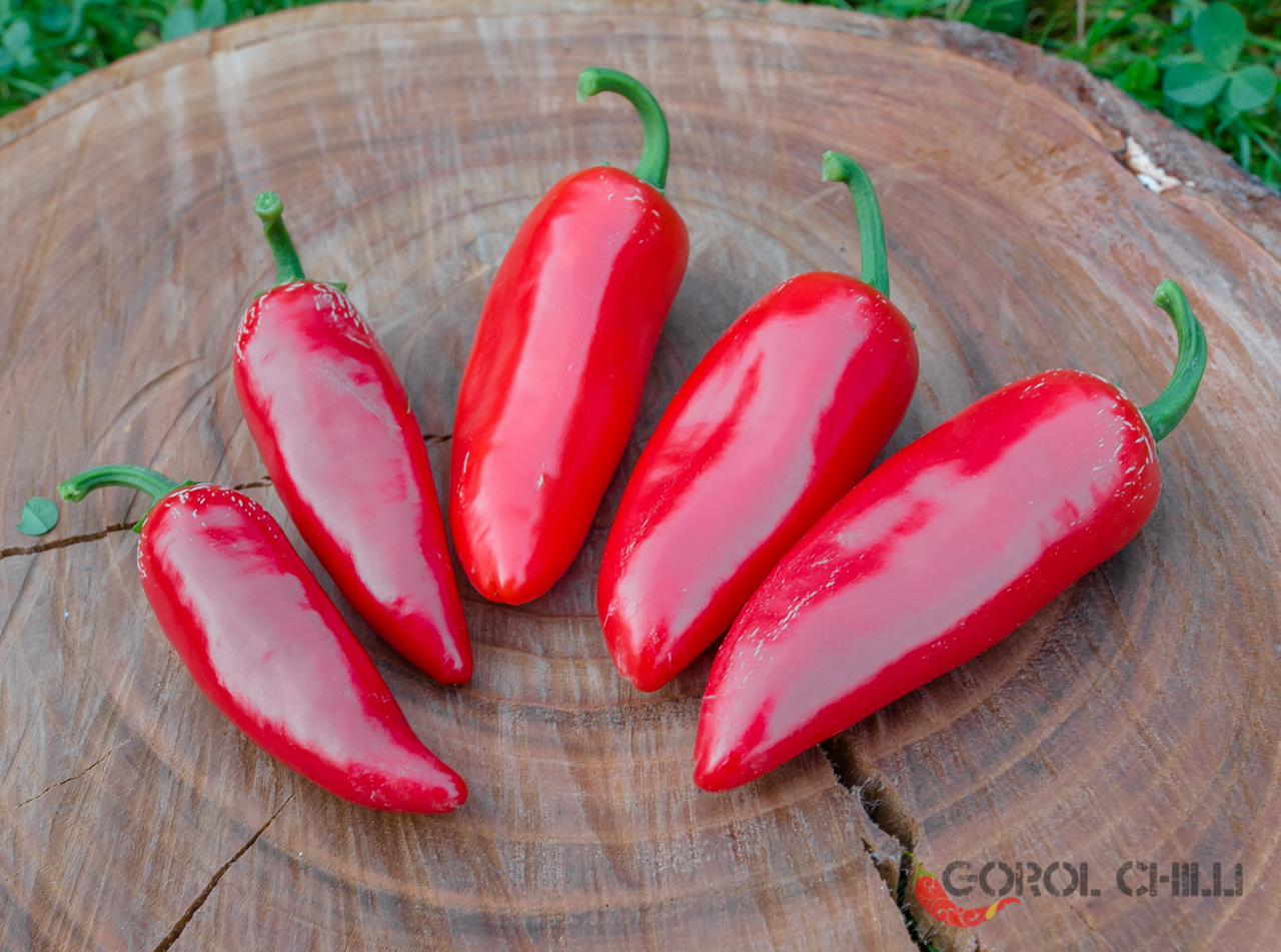 Plody: Podlouhlé, robustní, na konci se zužují do nápadné špičky. Dorůstají délky asi 5-7 cm a průměru okolo 2-3 cm. Zprvu jsou tmavě zelené, později zrají do sytě červené barvy.  Chuť a pal: Papriky vynikají velmi kořeněnou ovocnou chutí…