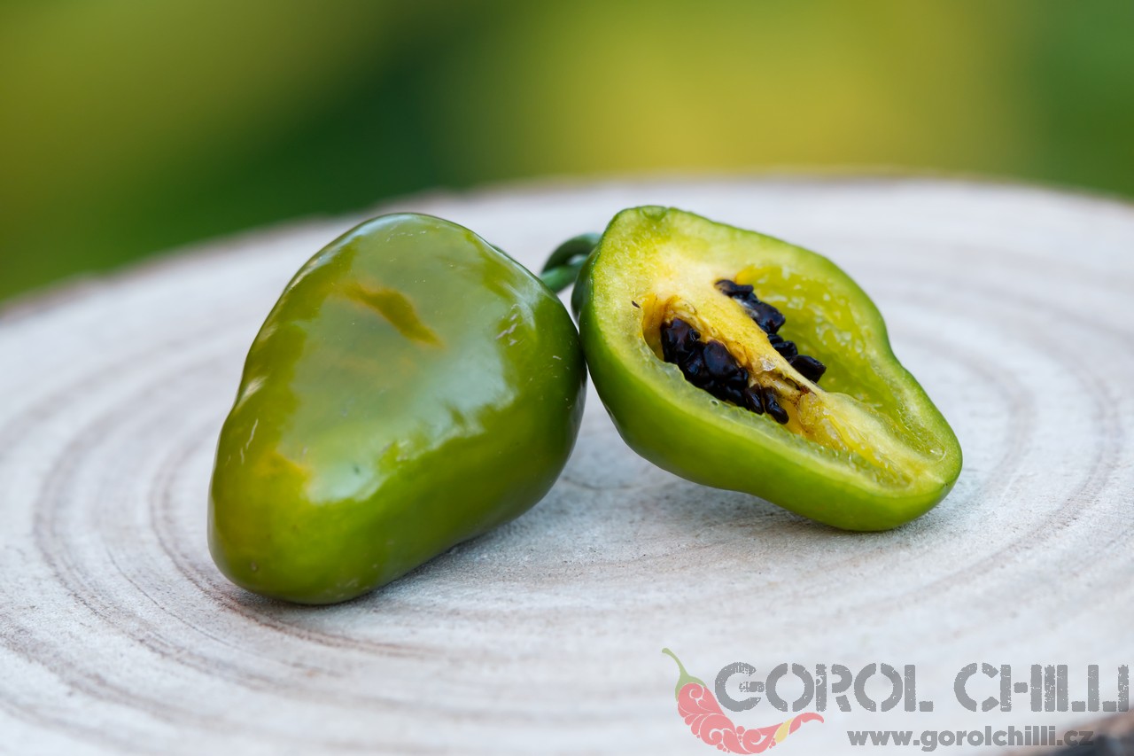 Plody: Robustní, spíše soudečkovité, připomínající velmi drobné sladké papriky. Dorůstají okolo 4-5 cm na délku a asi 2-3 cm v průměru. Nezralé plody jsou zelené s velmi výrazným bílým až nažloutlým panašováním. Zralé papriky mohou být…