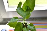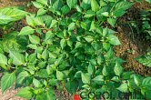Rostlina: Zhruba 1 metr vyoký keřík s rozložitou korunou. Vedle drobných plodů má mohutný kmen a poměrně velké listy. Celá rostlina je zelená. Plody nasazuje v trsech, proto jich jedna rostlina může mít až stovky.