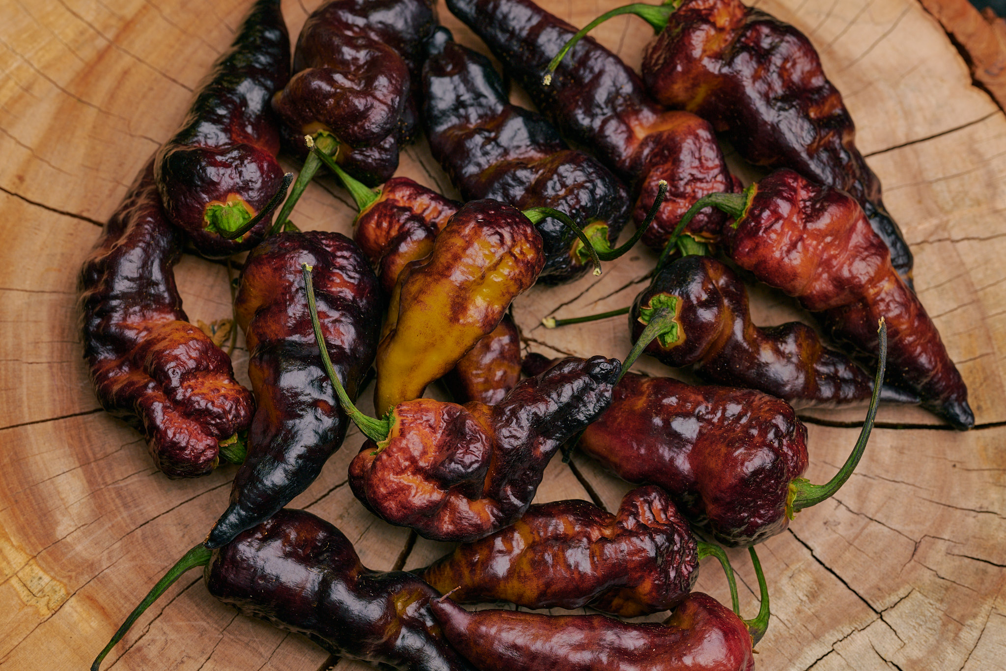 Plody: Drobné kuličky dorůstající méně než 1 cm v průměru. Zezačátku jsou tmavě zelené s černými skvrnami, později zraj do tmavě červené barvy.   Chuť a pal: Zralé plody se vyznačují velmi kořeněnou chutí a kouřovým aroma. Stěna plodů při…