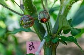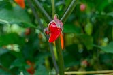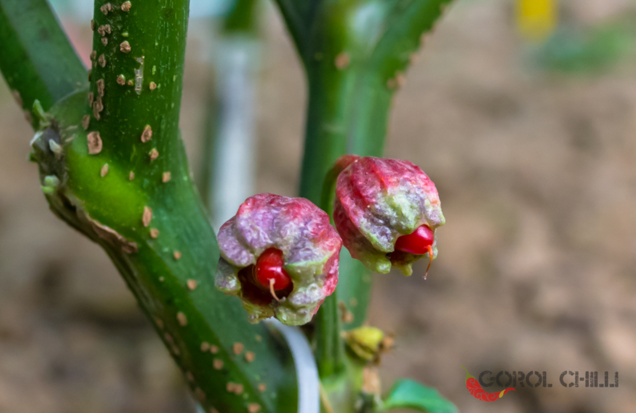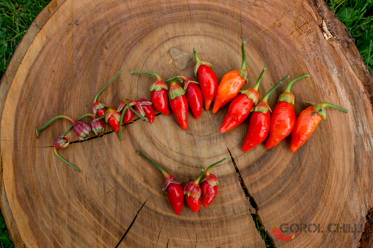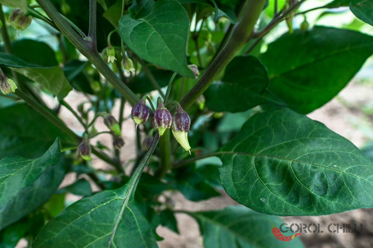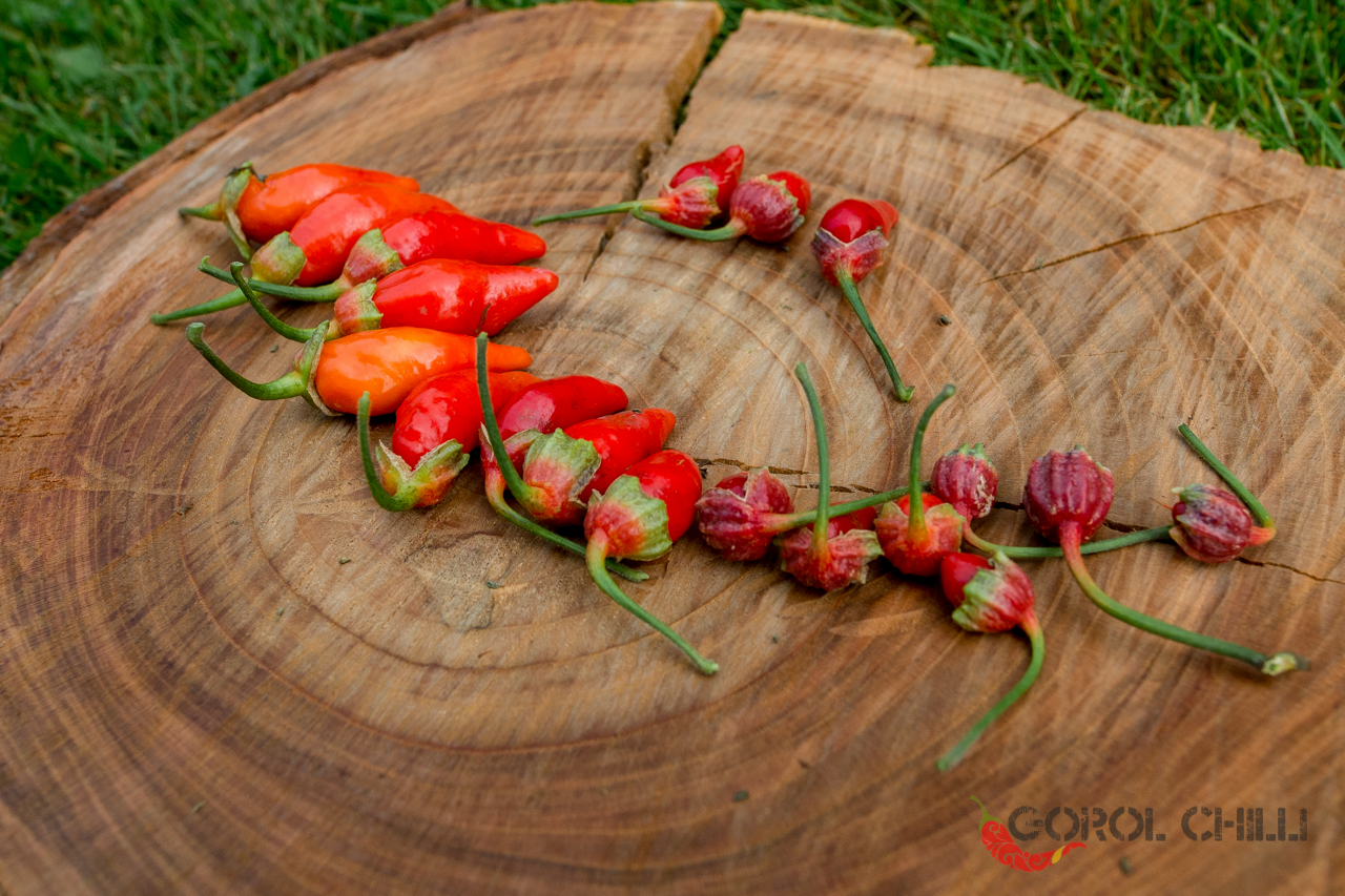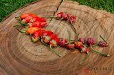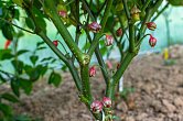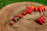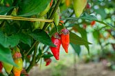 Plody: Soudečkovité, spíše protáhlé, hladké s výrazně vyvinutým kalichem. Dorůstají délky okolo 3-4,5 cm a průměru kolem 1,5-2 cm. Zprvu jsou zelené, následně zrají přes oranžovou do červené barvy.