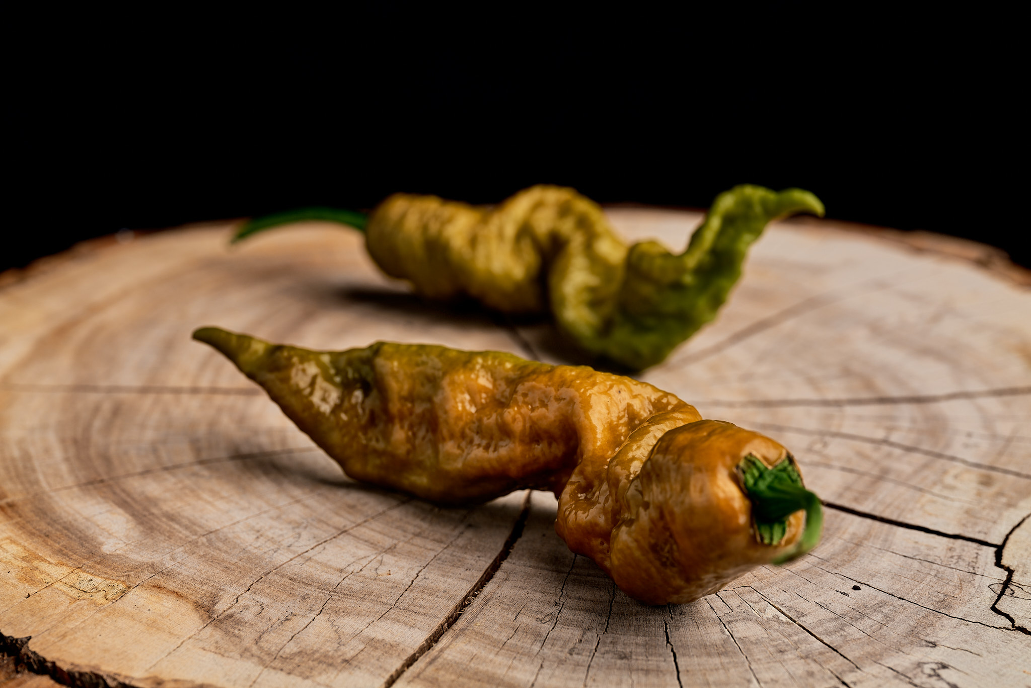 Plody: Robustní, soudečkovité a s velmi zvrásněným povrchem. Jsou asi 4-6 cm dlouhé a okolo 3-4 cm široké. Zprvu jsou zelené, následně zrají do sytě červené barvy.  Chuť a pal: Plody jsou typické svým bohatým ovocným a kořeněným aroma a…