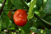 Plody: Soudečkovité, spíše menší, dorůstají délky okolo 3-4,5 cm a průměru kolem 2 cm. Mají mírně krabatý a lesklý, až voskovitý povrch. Zprvu jsou zeleno fialové, později zrají přes oranžovou do červené barvy s fialovými přelivy.  Chuť a…