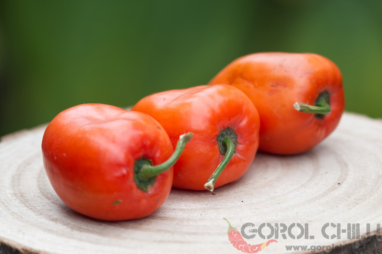 Plody: Podlouhlé, na průřezu kulaté, mírně hrbolaté se silnou stěnou. Zrají z tmavě zelené do červené barvy. Chuť a pal: Chuť je ovocná, mírně kořeněná s palčivým aroma. Pal je velmi vysoký, rozhodně přesahuje 1 milion SHU. Rostlina:…
