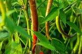 Plody: Velmi dlouhé a úzké s jemně vrásčitým povrchem. Nezralé plody jsou fialovozelené, následně zrají do nádherné pastelově červené barvy.