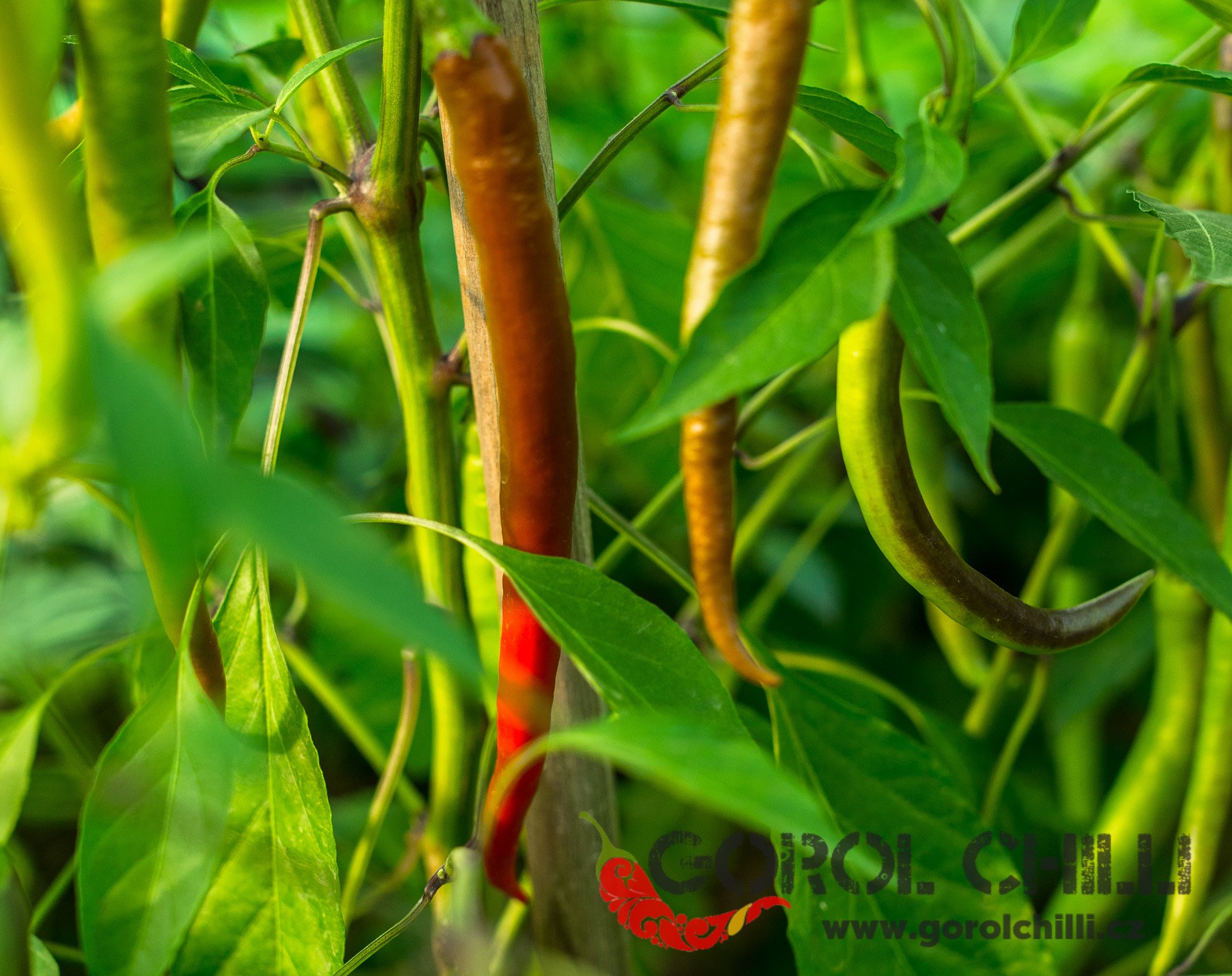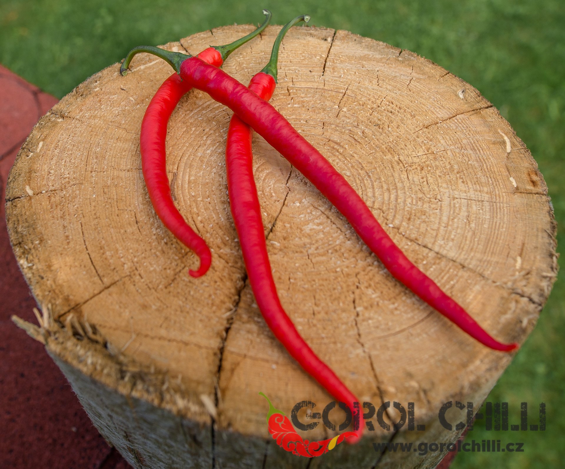 Plody: Podlouhlé, velmi krabaté a s náladným dlouhým ocáskem. Dorůstají délky okolo 7-9 cm (včetně ocásku) a průměru asi 3-4 cm. Zrají ze zelené do červené barvy. Chuť a pal: Papriky mají ovocnou chuť s kořeněnými tóny doprovázenou…
