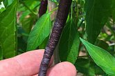 Plody: Robustní, spíše podlouhlé, na konci s výrazným ocáskem zakončeným zřetelnou špičkou. Dorůstají asi 5-7 cm včetně ocásku a okolo 3-4 cm v průměru. Nejprve jsou tmavě fialové až černé, následně zrají to sytě broskvového odstínu s…