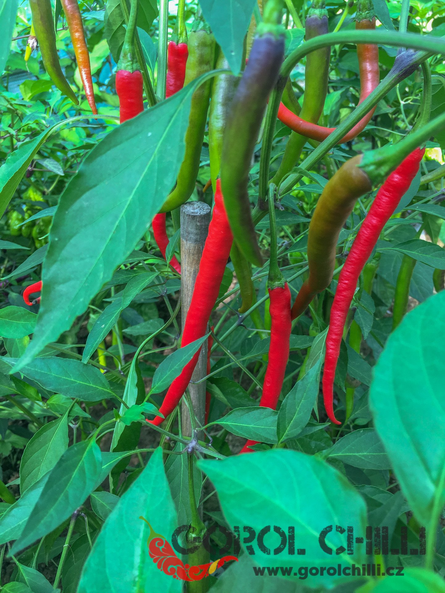 POZOR: Kupujete neustálenou hybridní odrůdu F2 generace. Mějte, prosím, na paměti, že Vámi vypěstované rostliny mohou mít odlišnou charakteristiku oproti výše popsané. Vzhledem k tomu, že oba rodiče měli úzký a podlouhlý tvar plodů, budou následující generace PRAVDĚPODOBNĚ varírovat pouze v délce plodů a barvě rostliny.