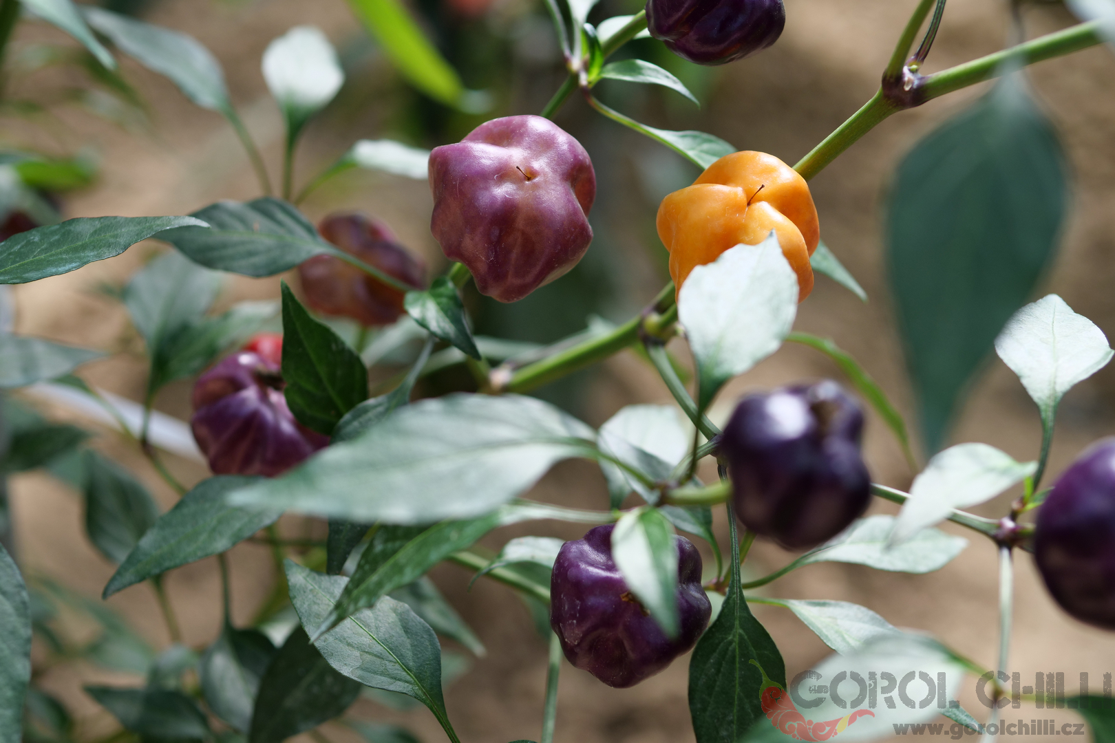 Plody: Robustní, zavalité, svým způsobem připomínají lehce krabaté habanero. Dorůstají délky okolo 5-6 cm a průměru asi 4-5 cm. Zprvu jsou světle zelené, následně zrají do bledě oranžové barvy.  Chuť a pal: Plody se vyznačují jemnou…
