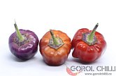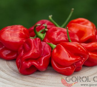 Plody: Robustní, zavalité a extrémně krabaté. Dorůstají délky okolo 5-6 cm a asi 3-4 cm v průměru. Zrají ze zelené do jasně červené barvy.  Chuť a pal: Plody mají velmi příjemnou ovocnou chuť doprovázenou kořeněnými exotickými tóny. Plně…
