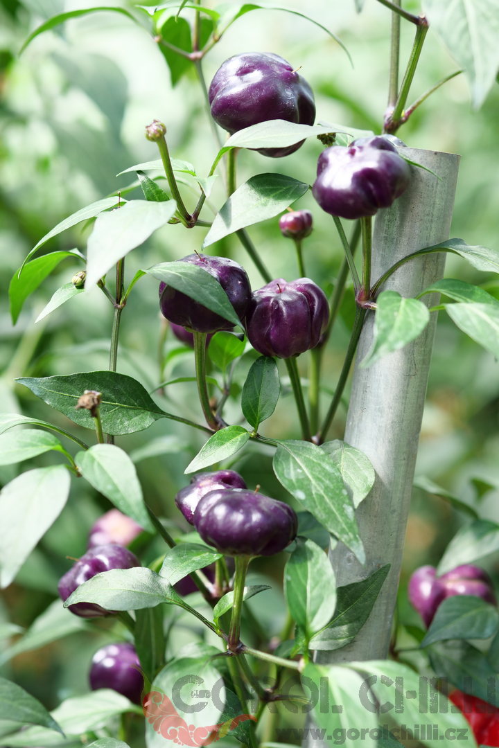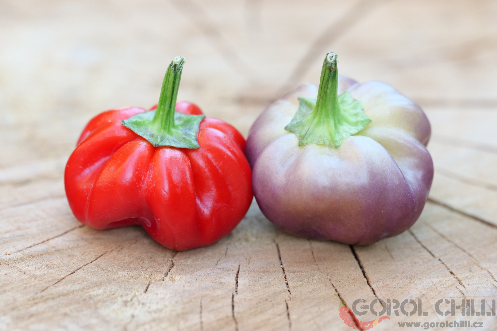 Plody: Menší, soudečkovité, na první pohled připomínající zmenšenou Morugu. Zprvu jsou tmavě zelené, později zrají do svítivě červené barvy.  Chuť a pal: Plody jsou ovocné a nezvykle sladké, doprovázené velmi agresivním kořeněným aroma.…
