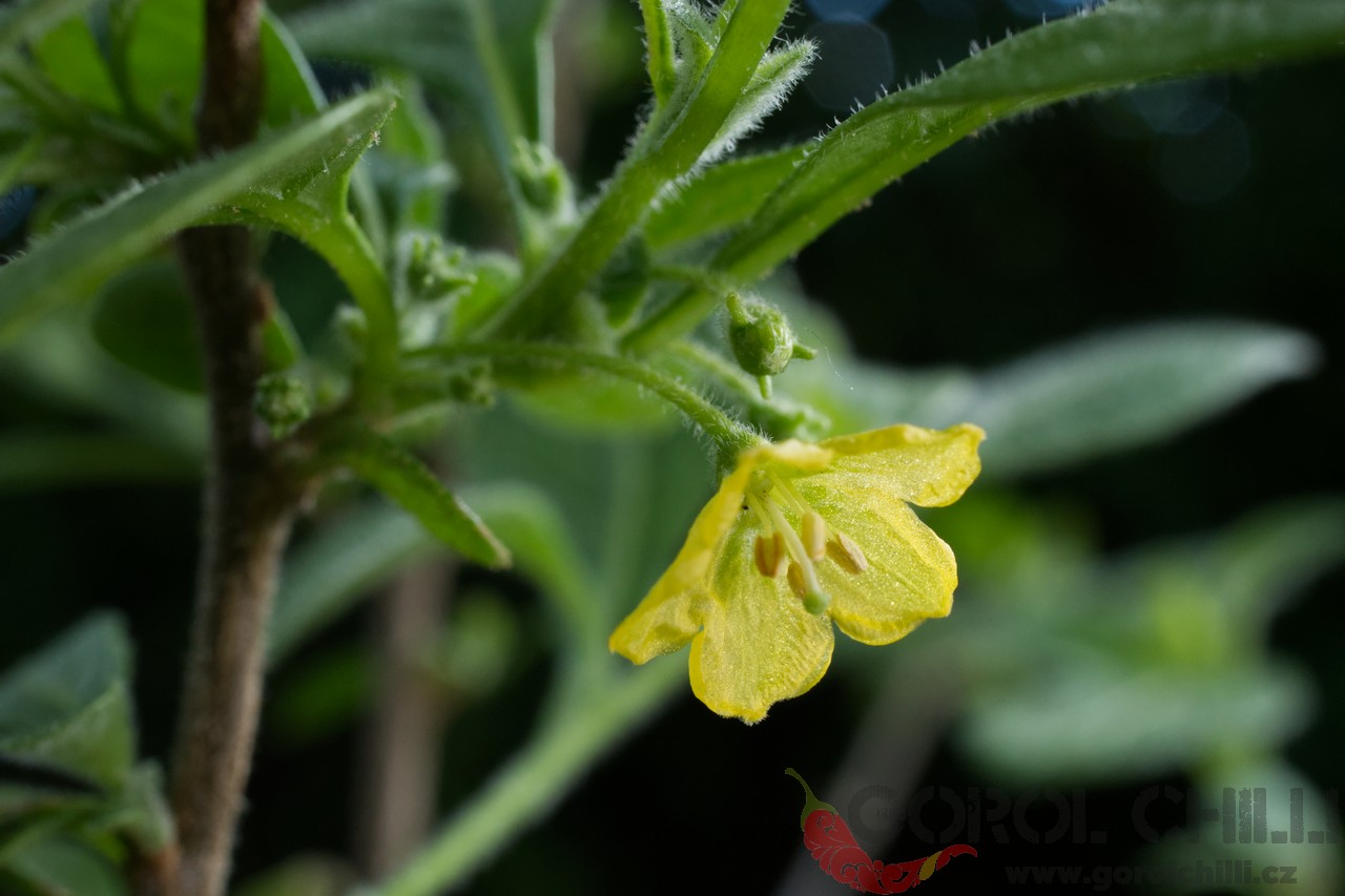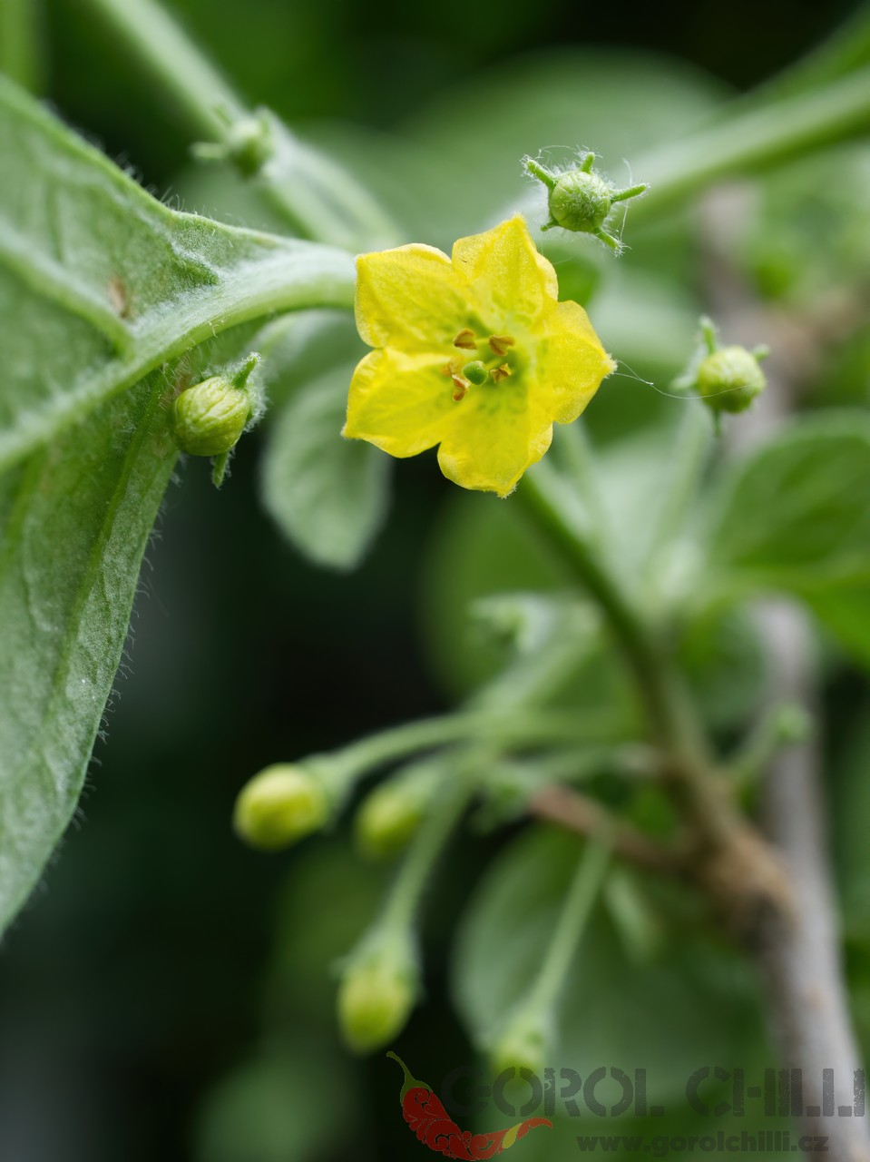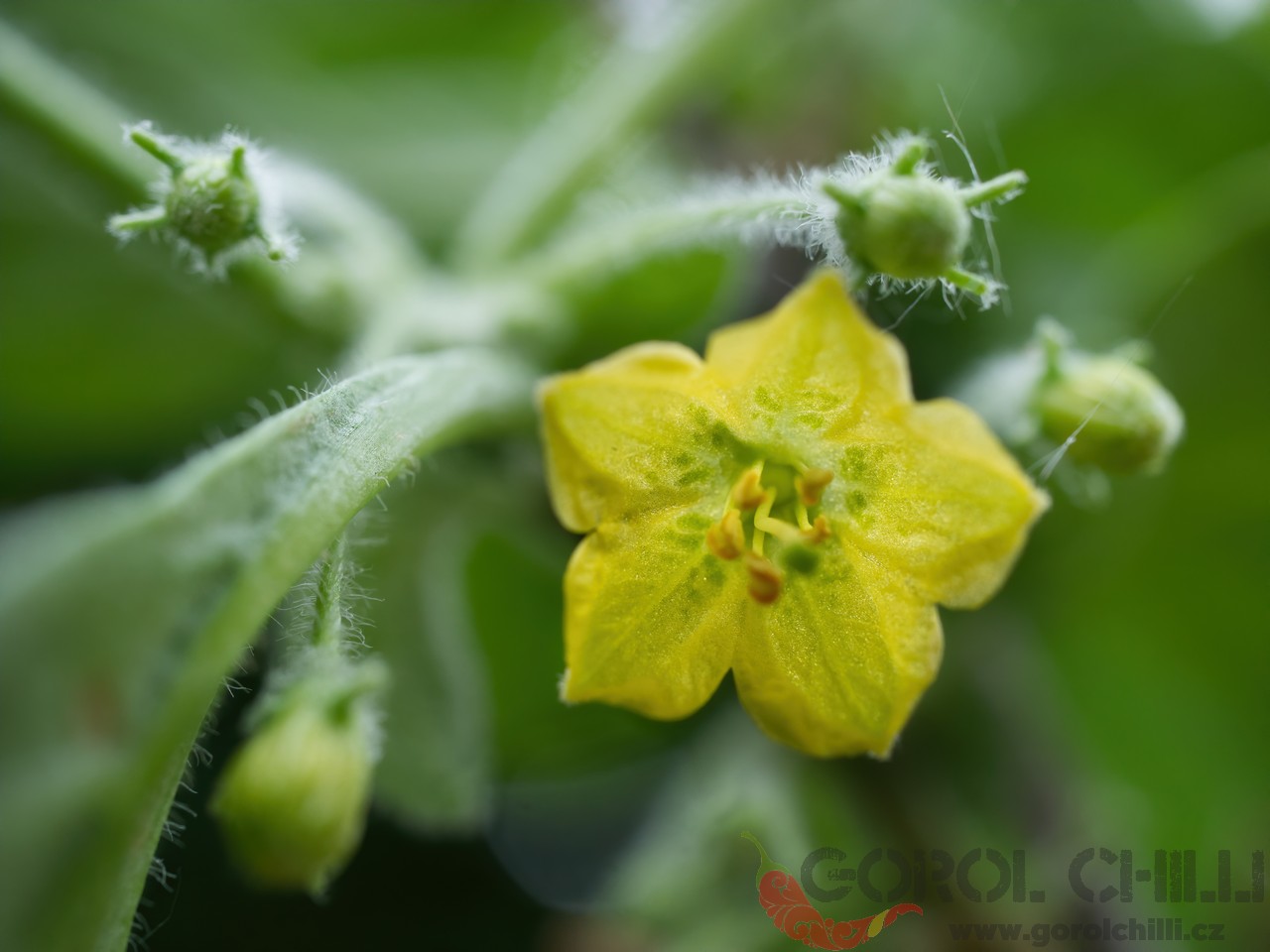 Rostlina: Spíše hustě větvený a kompaktní keř dorůstající prvním rokem výšky okolo 1 metru a průměru koruny okolo 0,7-1 m. Při rozkvětu jsou rostliny obalené stovkami nádherných žlutých květů se zelenými středovými skvrnkami, které vyrůstají v početných trsech.
