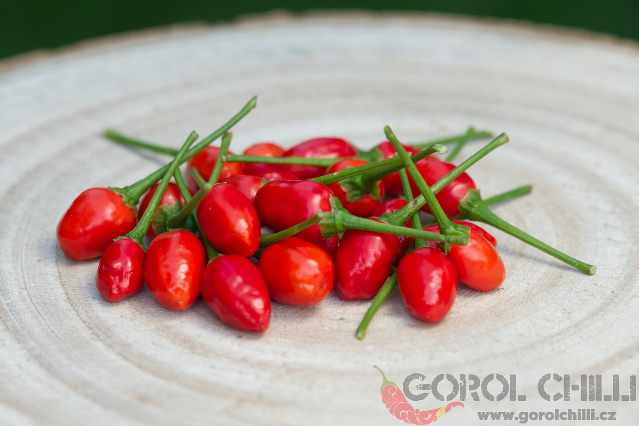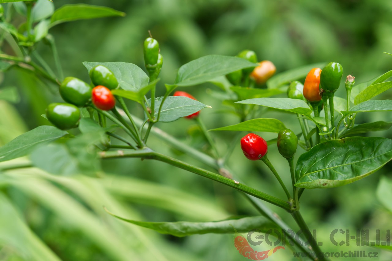 Plody: Podlouhlé, na průřezu kulaté, mírně hrbolaté se silnou stěnou. Zrají z tmavě zelené do červené barvy. Chuť a pal: Chuť je ovocná, mírně kořeněná s palčivým aroma. Pal je velmi vysoký, rozhodně přesahuje 1 milion SHU. Rostlina:…
