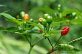 Plody: Drobné, vejčité, asi 1,5-2 cm dlouhé a okolo 1 cm široké. Zprvu jsou želené, poté zrají přes oranžovou do červené barvy. Na rostlině vyrůstají vzpřímeně zpravidla v trsech po 2-3 stopkách.