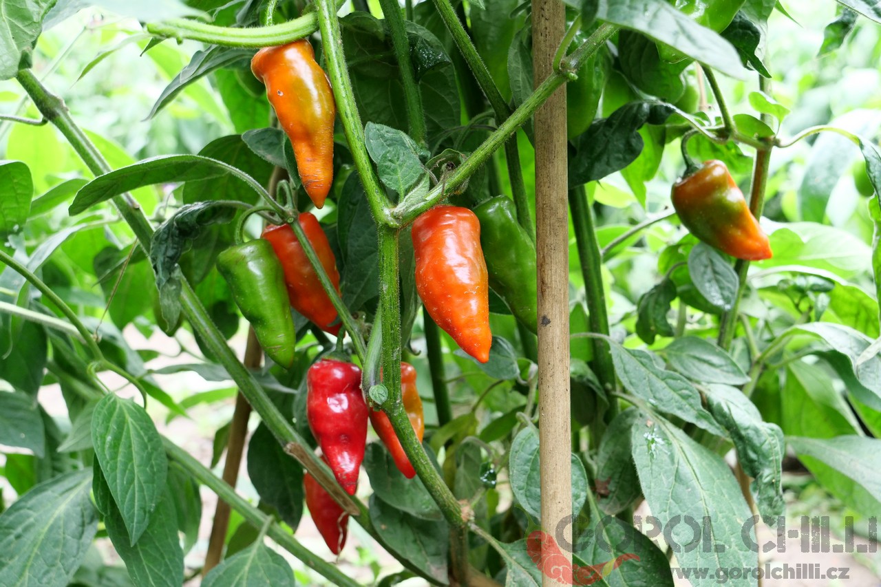 Plody: Podlouhlé, na první pohled připomínající Jolokii ale užší a s výraznou špičkou. Zprvu jsou zelené, následně dozrávají do růžovo oranžové barvy. Chuť a pal: Aroma i chuť jsou velmi ovocné a exotické. Pal je však velmi vysoký, dle…