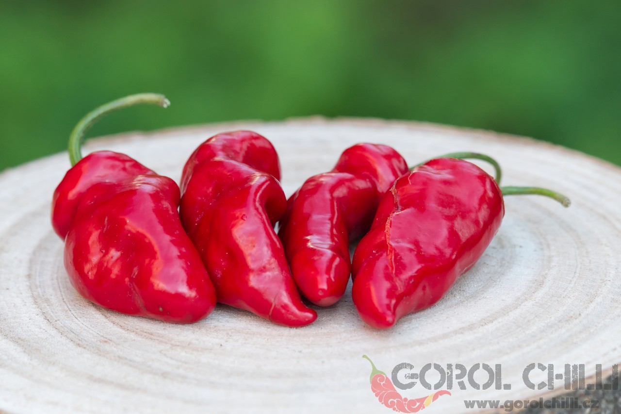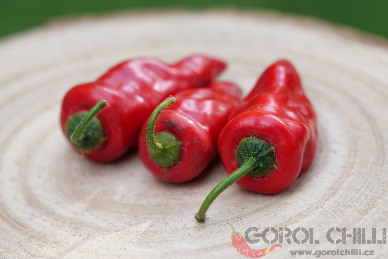 Plody: Moruga na steroidech. Plody jsou robustní, soudečkovité a s extrémně krabatým povrchem. Dorůstají pěkných rozměrů, asi 4-5 cm do délky a okolo 5 cm v průměru. Zprvu jsou tmavě zelené, následně zrají do červené barvy.  Chuť a pal:…