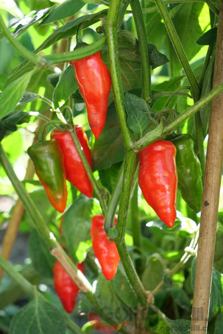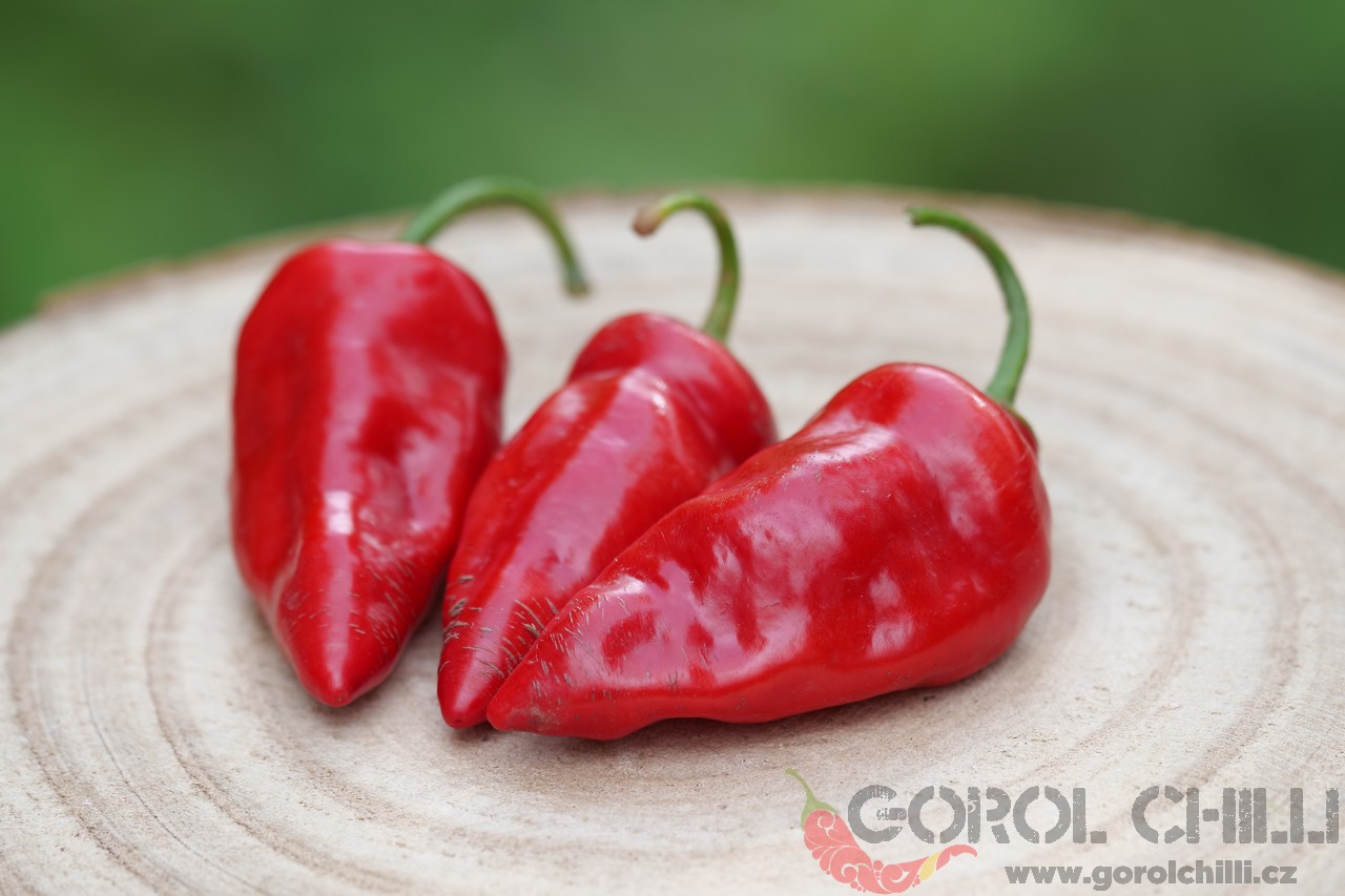 Plody: Podlouhlé, úzké a silně vrásčité. Dorůstají délky okolo 8-11 cm a průměru do 2 cm. Zprvu jsou světle zelené až bělavé, následně zrají do zářivě červené barvy.  Chuť a pal: Papriky vynikají kořeněnou ovocnou chutí, kterou doprovází…