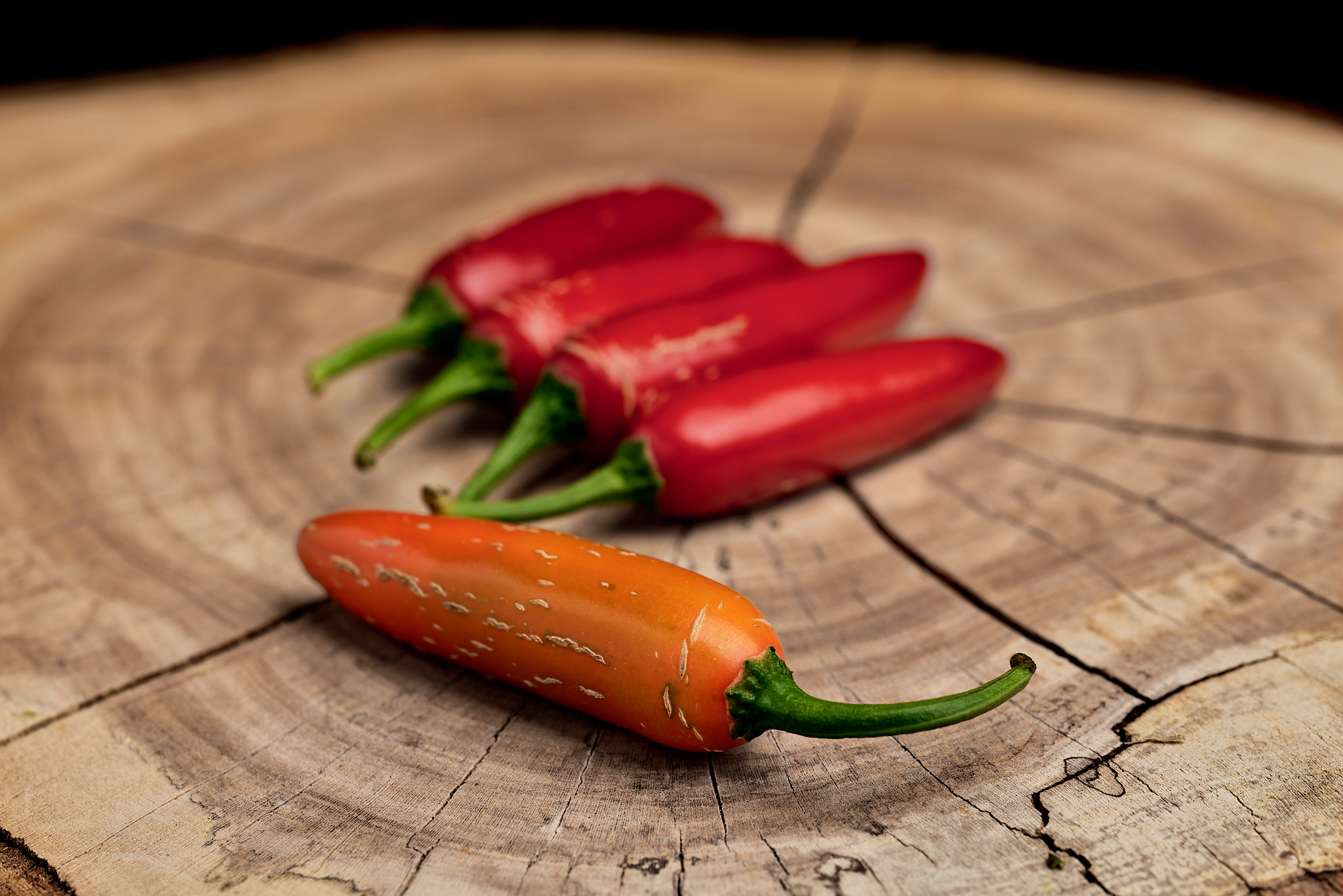 Plody: Podlouhlé, spíše užší a s krabatým povrchem. Dorůstají délky okolo 10 cm a průměru 2-2,5 cm. Zprvu jsou tmavě zelené, následně zrají do červené barvy.  Chuť a pal: Plody mají velmi kořeněnou a zemitou chuť, která je pro kultivary…