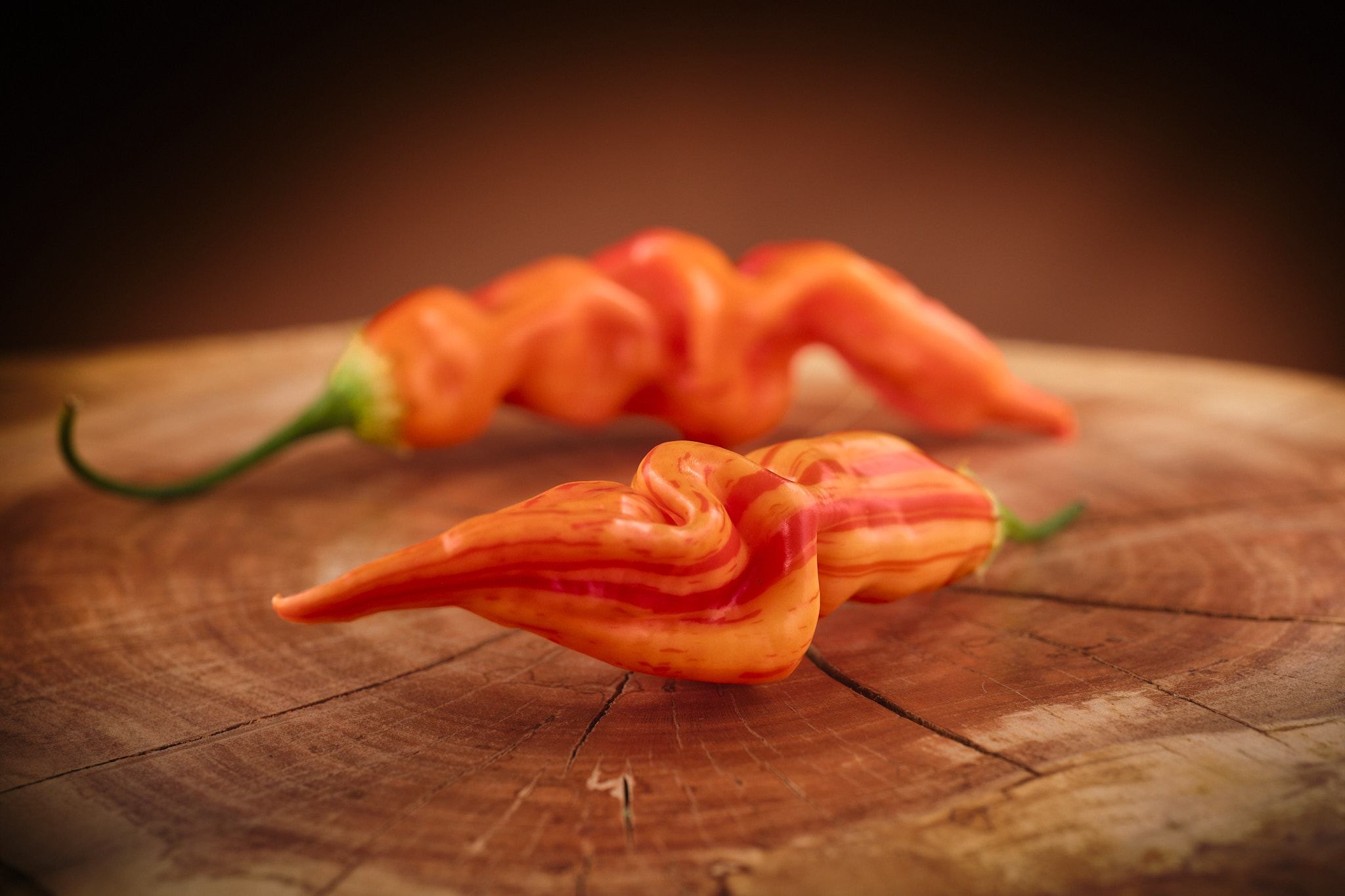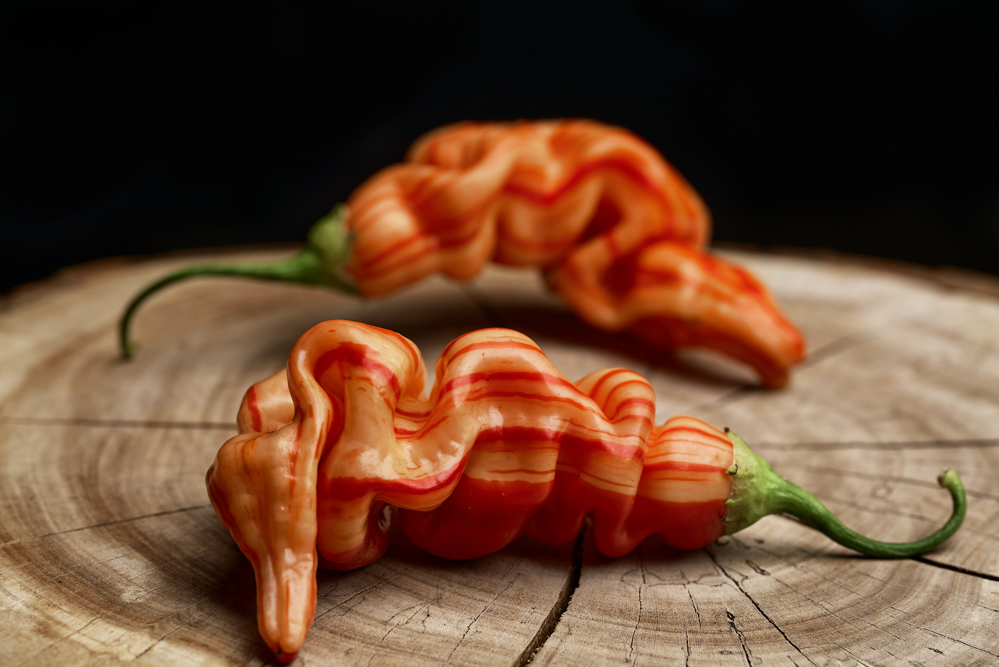Plody: Masivní, podlouhlé a často šroubovitě zatočené. Na délku dorůstají okolo až 15-20 cm, v průměru pak asi 3 cm. Nezralé plody jsou zelené, v raném průběhu zrání odrůda začne měnit odstín do oranžové. Ke konci zrání se na rostliny začnou vykreslovat výrazné červené pruhy, které se zpravidla táhnout od stopky až ke špičce. V některých případech mohou být pruhy velmi silné a pokrývat 1/3 plodu, případně může plod zčervenat zcela.