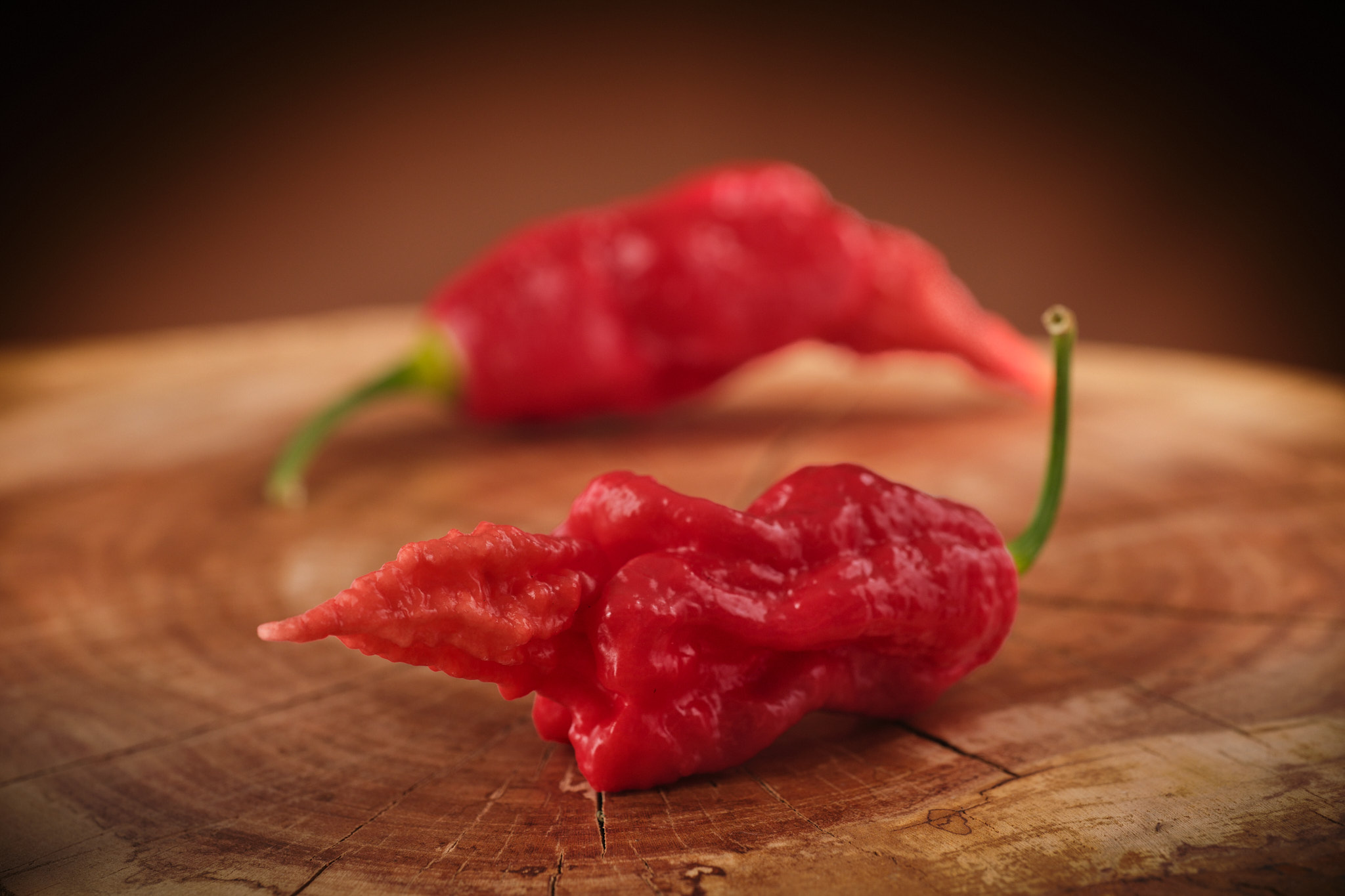 Plody: Robustní, soudečkovité a extrémně zvrásněné. Dorůstají délky okolo 4-5 cm a porobného průměru. Zprvu jsou tmavě zelené, následně zrají do sytě červené barvy.  Chuť a pal: Plody mají silně kořeněnou chuť s ovocnými tóny s palčivým…