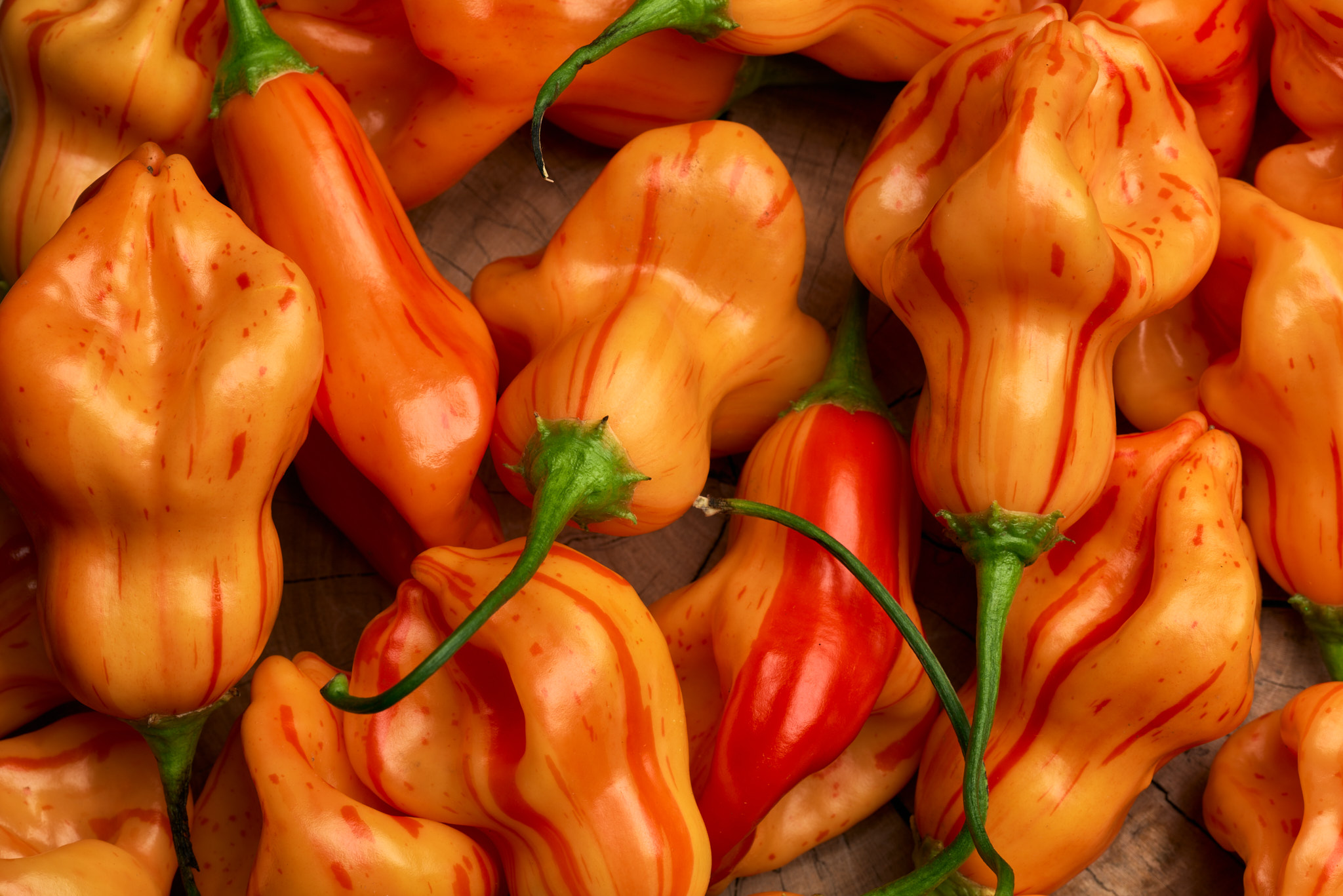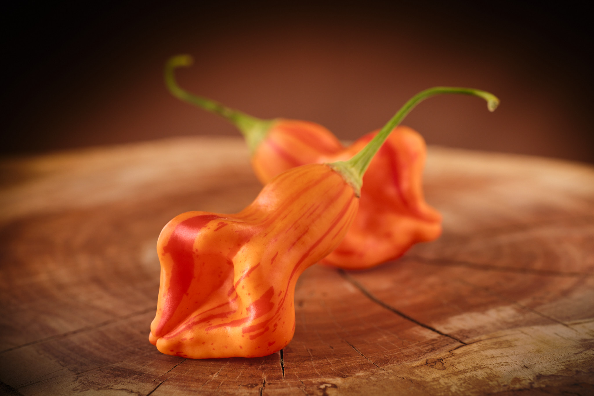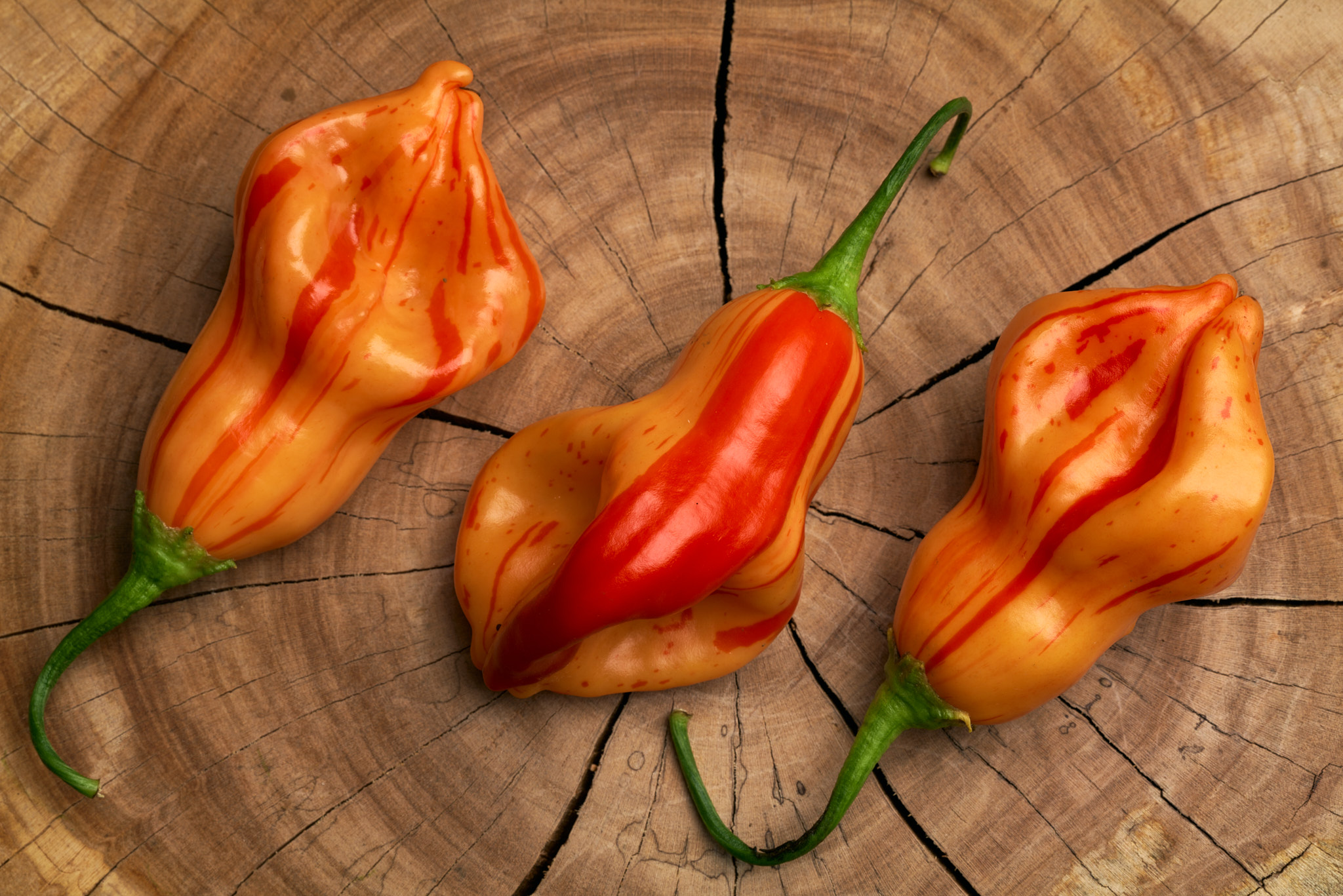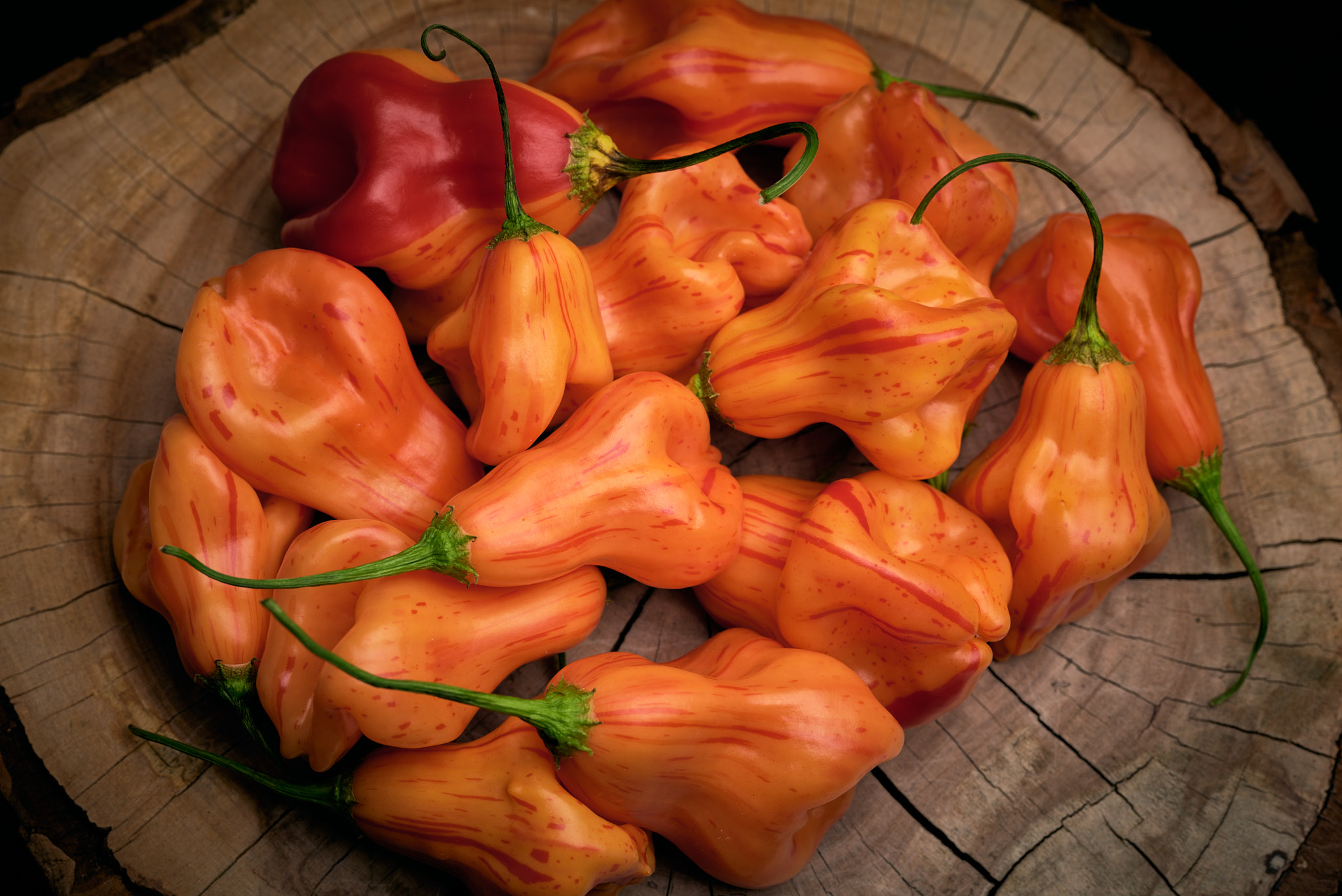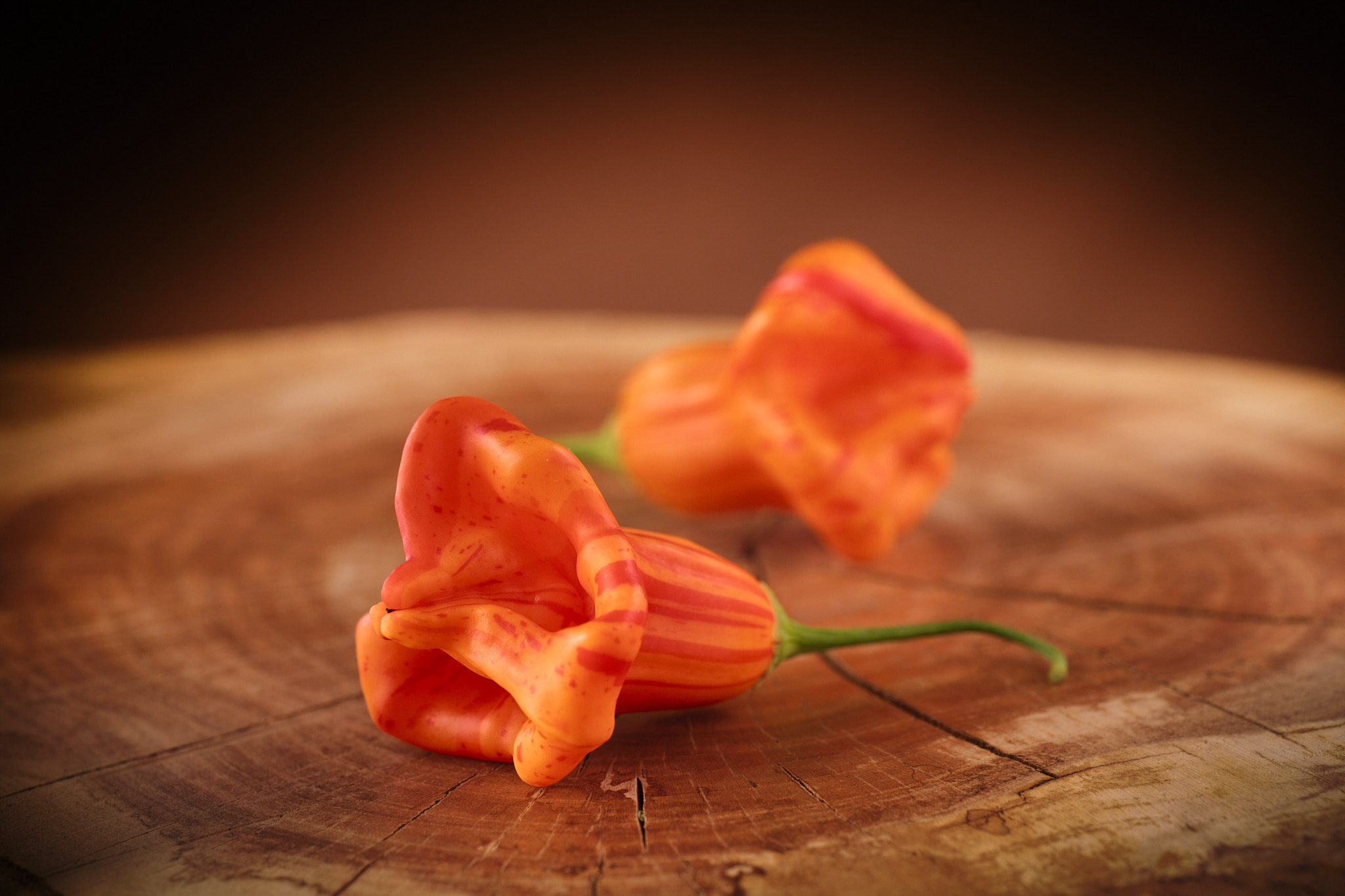 Plody: Středně velké, kulaté a zploštělé, s charakteristickými záhyby po stranách, které vytváří tvar připomínající skotskou čepici (Bonnet) nebo UFO. (Na fotografii jsou plody sytě oranžové barvy a typicky zmačkaného tvaru C. chinense).…